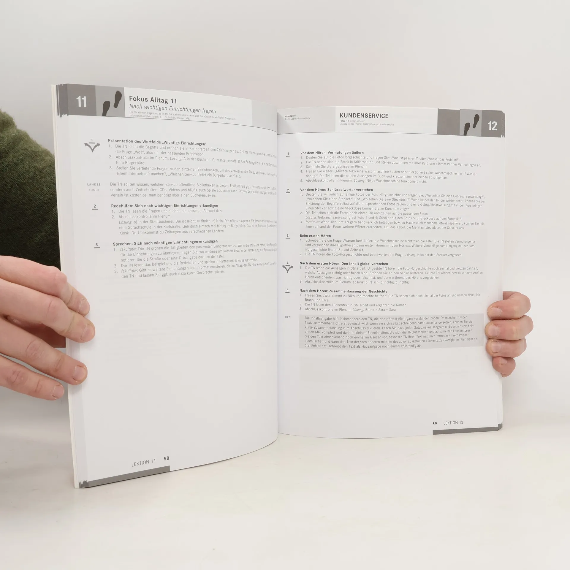 Das Lehrerhandbuch zu Kurs- und Arbeitsbuch 2 (BA 5/10) des Lehrwerks für erwachsene und jugendliche Deutschlerner enthält zahlreiche Materialien für Lehrer, die Transkription der Hörtexte sowie die Lösungen zu den Aufgaben im Kurs- und Arbeitsbuch. Wegen der Lösungen dem Lehrwerk möglichst hinzufügen. (2)
