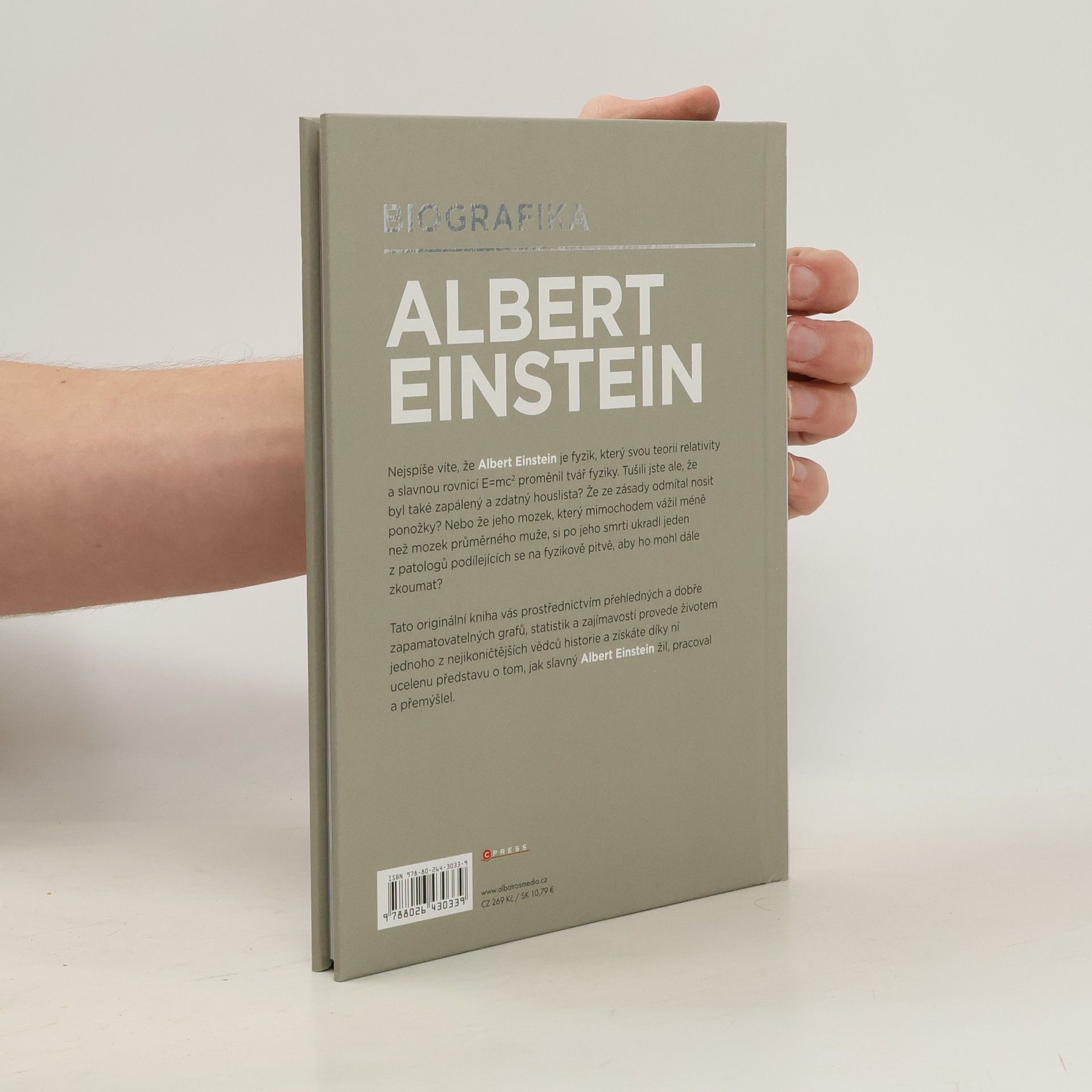 Tušili jste, že Einstein byl zapálený a zdatný houslista? Že ze zásady odmítal nosit ponožky? Nebo že jeho mozek si po jeho smrti ukradl jeden z patologů podílejících se na fyzikově pitvě, aby ho mohl dále zkoumat? Tato originální kniha vás prostřednictvím přehledných a dobře zapamatovatelných grafů, statistik a zajímavostí provede životem jednoho z nejikoničtějších vědců historie a získáte díky ní ucelenu představu o tom, jak slavný Albert Einstein žil, pracoval a přemýšlel.