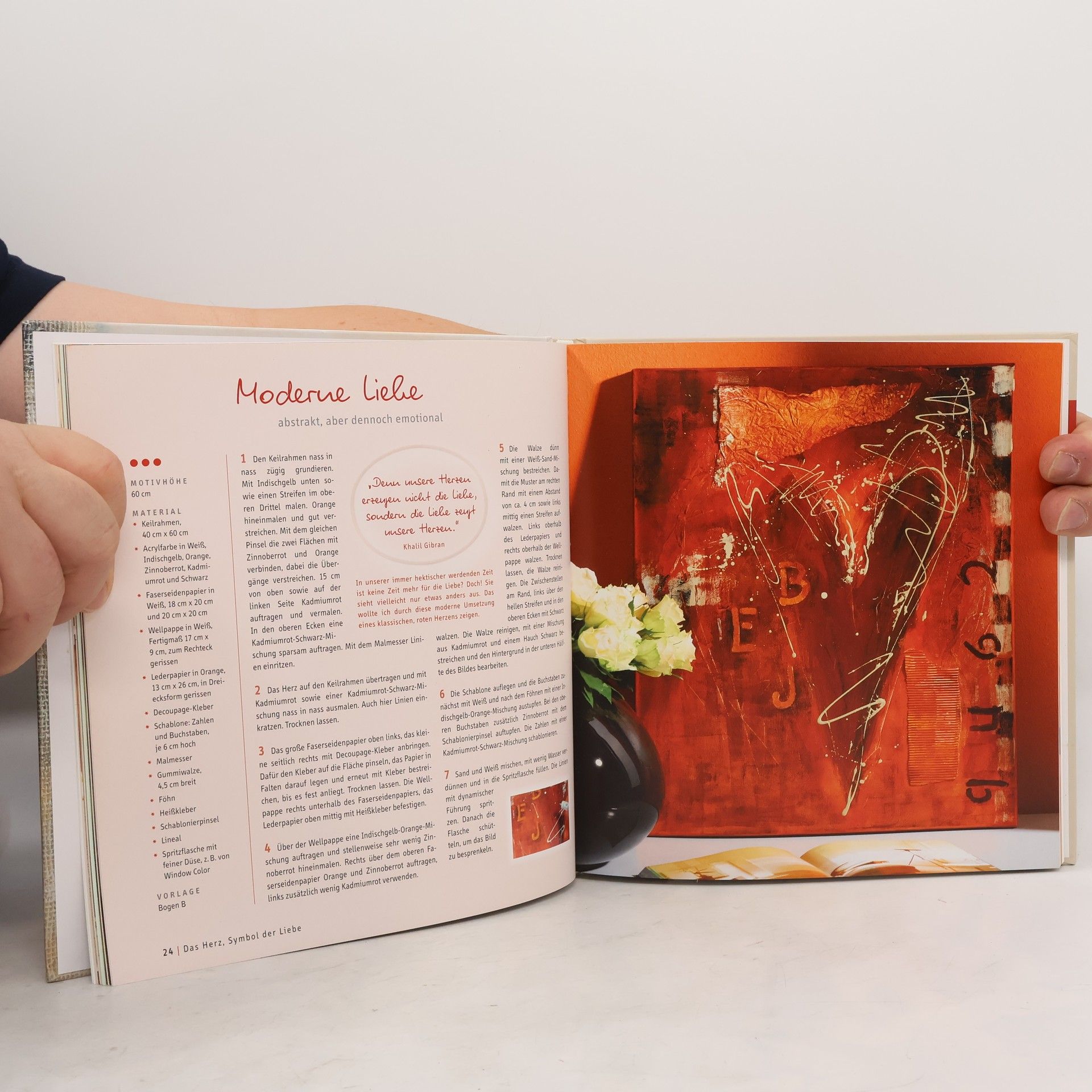 Neben den beliebten Herzmotiven sind auch Zeichen der Herzlichkeit, Liebe und Freundschaft sowie Schenken mit Herz Themen in dem Buch. Dabei spiegelt sich die gefühlvolle Motivwelt auch in der sehr emotionalen Aufmachung dieses Bandes wider. Die Vielfalt der liebenswerten Acrylbilder reicht von herzlichen Wortbotschaften und starken Symbolen bis zu speziellen Geschenkbildern für besondere Anlässe, wie Geburt oder Hochzeit - das ganz persönliche Präsent für Menschen, die uns am Herzen liegen. 96 Seiten, 22 x 23 cm, Hardcover, Vorlagen im Buch, Vorlagenbogen