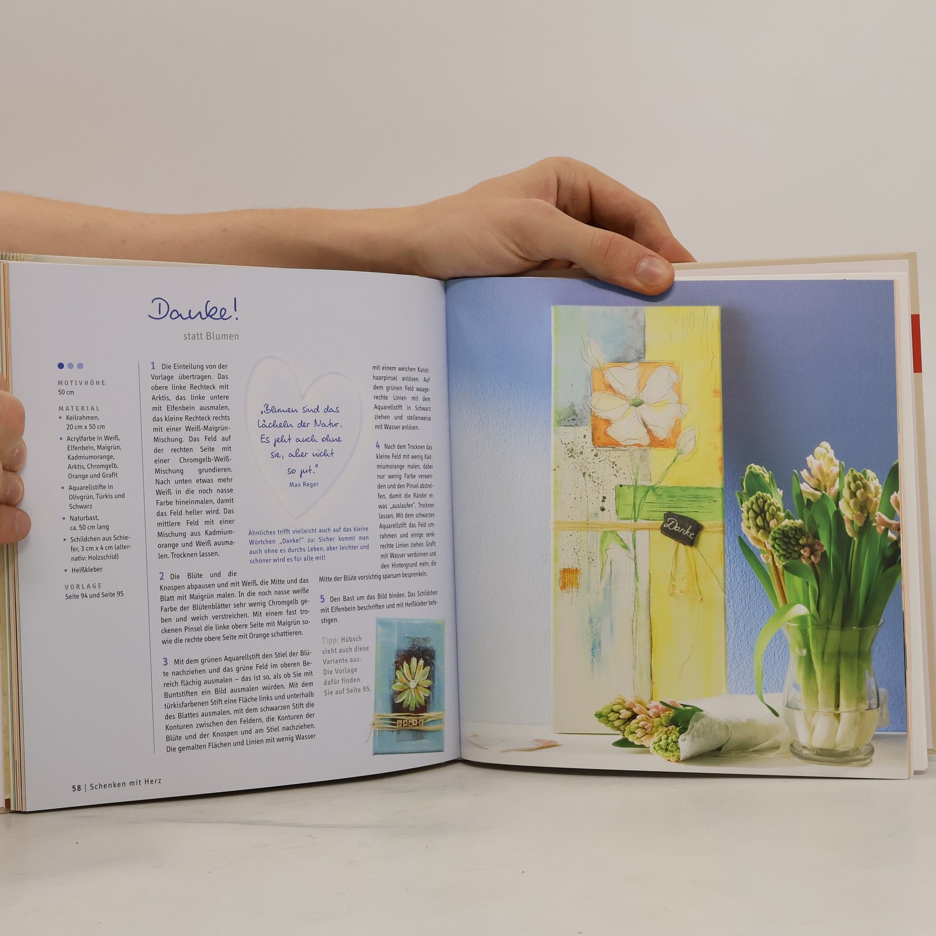 Neben den beliebten Herzmotiven sind auch Zeichen der Herzlichkeit, Liebe und Freundschaft sowie Schenken mit Herz Themen in dem Buch. Dabei spiegelt sich die gefühlvolle Motivwelt auch in der sehr emotionalen Aufmachung dieses Bandes wider. Die Vielfalt der liebenswerten Acrylbilder reicht von herzlichen Wortbotschaften und starken Symbolen bis zu speziellen Geschenkbildern für besondere Anlässe, wie Geburt oder Hochzeit - das ganz persönliche Präsent für Menschen, die uns am Herzen liegen. 96 Seiten, 22 x 23 cm, Hardcover, Vorlagen im Buch, Vorlagenbogen