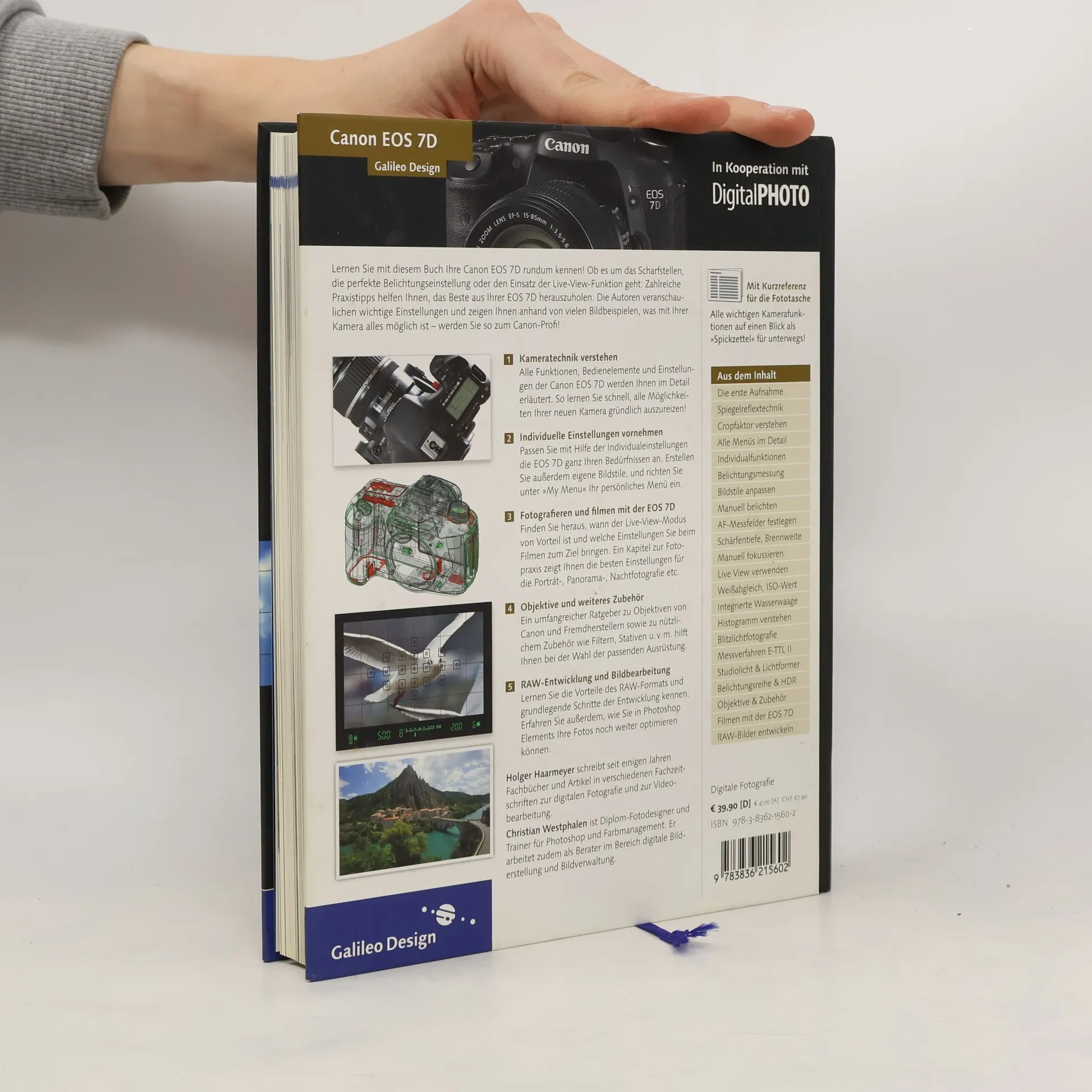 Mit diesem umfassenden Handbuch zur Canon EOS 7D bleibt Ihnen keine Funktion Ihrer neuen Spiegelreflexkamera verborgen! Lernen Sie alle Einstellungsmöglichkeiten und Funktionen im Detail kennen. Und dann geht es gleich in die Praxis: Das Belichten und Scharfstellen in den Automatikprogrammen und im manuellen Modus sowie die wichtigen Parameter Weißabgleich, ISO-Einstellung und Autofokusmodi werden eingehend vorgestellt. Kapitel zur Foto- und Videopraxis zeigen Ihnen, wie Sie technisch hochwertige Aufnahmen machen und inspirieren Sie zu eigenen Fotos und Videos. Passende Objektive, Blitze sowie weiteres nützliches Zubehör - selbstverständlich auch von Fremdherstellern - für die Canon EOS 7D werden Ihnen vorgestellt: So können Sie aus der Fülle an erhältlichem Zubehör das für Sie richtige auswählen! Und auch die digitale Nachbearbeitung, die RAW-Entwicklung sowie die Ausgabe von Video- und Fotomaterial kommen in diesem Buch nicht zu kurz. Inklusive praktischer Kurzreferenz zu Menüs und Funktionen der EOS 7D als 'Spickzettel' für die Kameratasche! Ab sofort erhalten Sie beim Kauf eines Galileo-Buchs das E‑Book immer dazu. Sie finden vorn im Buch einen Zugangscode, der Sie berechtigt, das E‑Book von der Verlagswebsite herunterzuladen.