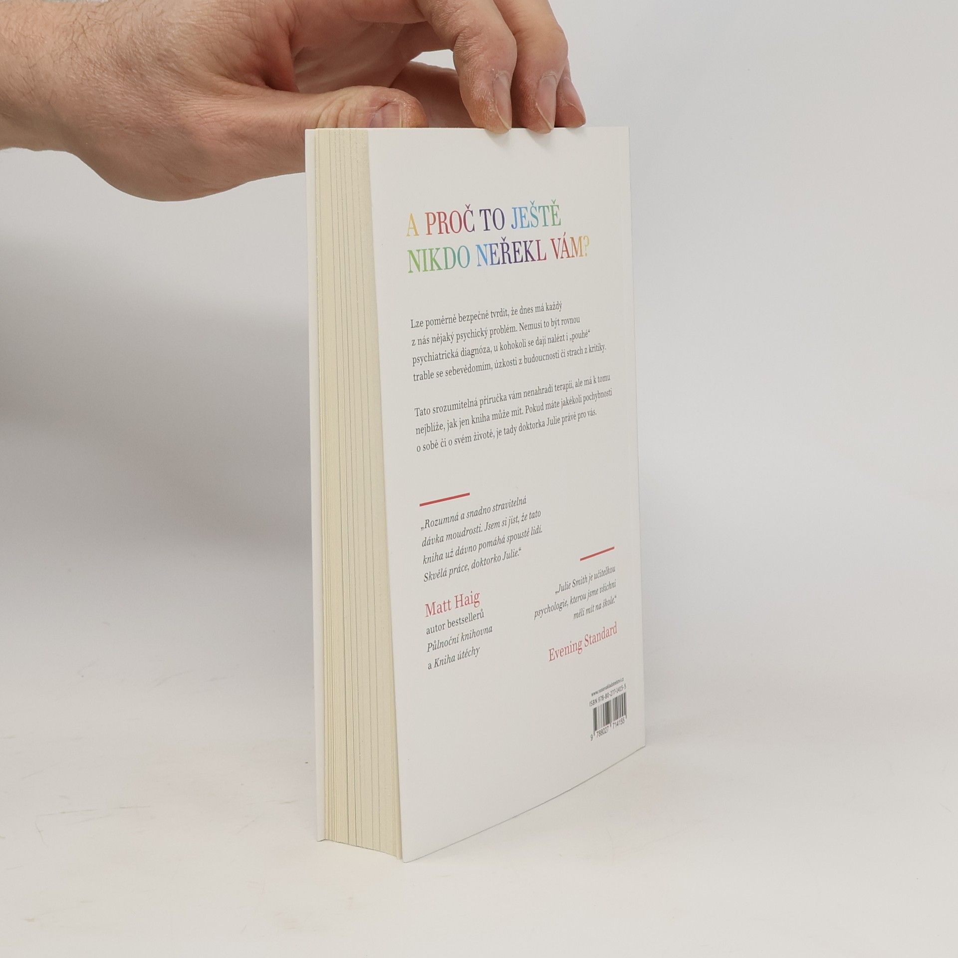 Kniha Proč mi tohle nikdo neřekl dřív? vás naučí, jak posílit své psychické zdraví a udržet si ho i v těch nejnáročnějších obdobích. Odborné rady doktorky Julie Smith a účinné copingové techniky vám pomohou zachovat vaši odolnost, ať už se chcete vyrovnat s úzkostmi, s kritikou, s depresí, vybudovat si sebejistotu, nalézt motivaci nebo se naučit odpouštět sami sobě.Na základě dlouholetých zkušeností s klinickou psychologií se autorka dělí o všechny dovednosti, které potřebujete, abyste zvládli životní vzestupy a pády.Tato kniha je plná tajemství z terapeutovy sady nástrojů a je nezbytnou příručkou pro optimalizaci duševního zdraví. Jednoduché, ale odborné rady doktorky Julie a účinné techniky zvládání vám pomohou zůstat odolní bez ohledu na to, co vám život postaví do cesty.Kniha je napsána v krátkých heslech, takže můžete přejít rovnou na tu část, kterou potřebujete, podle toho, jakému problému právě čelíte – a okamžitě najít vhodné nástroje, které vám pomohou.