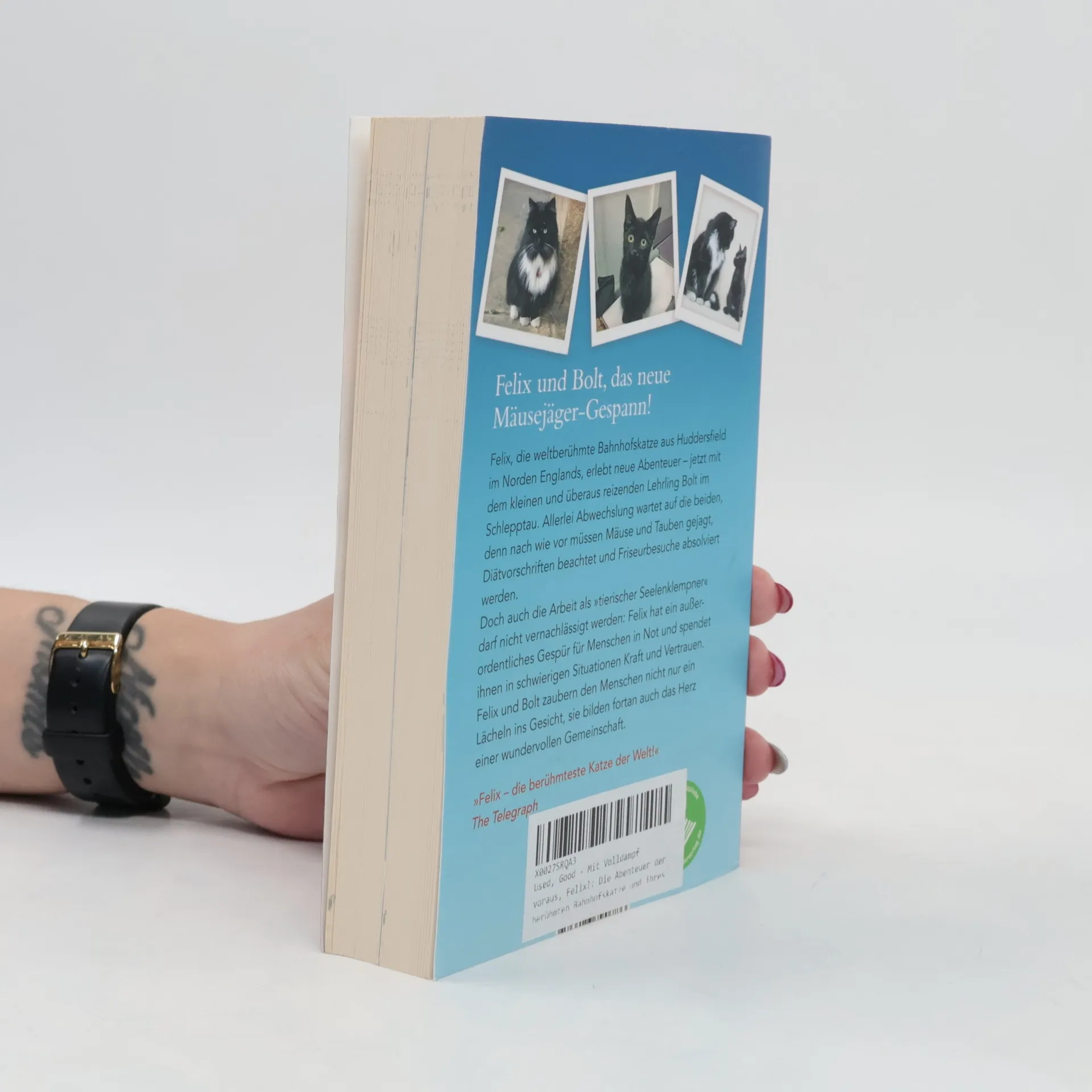 „Mit Volldampf voraus, Felix“ ist die Fortsetzung des Bestsellers „Felix, die Bahnhofs-Katze“ und eine besondere Tier-Biographie für Katzenliebhaber und Fans ähnlicher Geschichten. Felix kam 2011 als kleines Wollknäuel am Bahnhof in Huddersfield an und wurde sechs Jahre später zum Senior Pest Controller befördert. Sie ist ein voll integriertes Mitglied des Bahnhof-Teams und steht den Menschen in romantischen und tragischen Situationen zur Seite. Felix bringt Trost und neuen Lebensmut, zaubert den Menschen ein Lächeln ins Gesicht und verbindet sie miteinander. Mit ihrer wachsenden Berühmtheit wird das Leben für Felix hektischer. Täglich reisen zahlreiche Fans an, sogar aus China, um sie zu sehen und zu streicheln. Ihre Kollegen sorgen sich um sie und beschließen, einen Lehrling einzustellen, um die Herausforderungen zu meistern. Der kleine Kater Bolt wird als Unterstützung vorgestellt. Felix erlebt neue Abenteuer mit Bolt, während sie weiterhin Mäuse jagen, neue Schlafplätze einrichten, Diätvorschriften beachten und Friseurbesuche absolvieren. Gemeinsam bilden sie das Herz einer wundervollen Gemeinschaft. „Felix, die Bahnhofs-Katze“ war 2018 ein internationaler Bestseller und hat über 130.000 Fans bei Facebook. Felix nutzt ihre Bekanntheit auch für karitative Zwecke, etwa für Spendenaktionen für kranke Tiere.