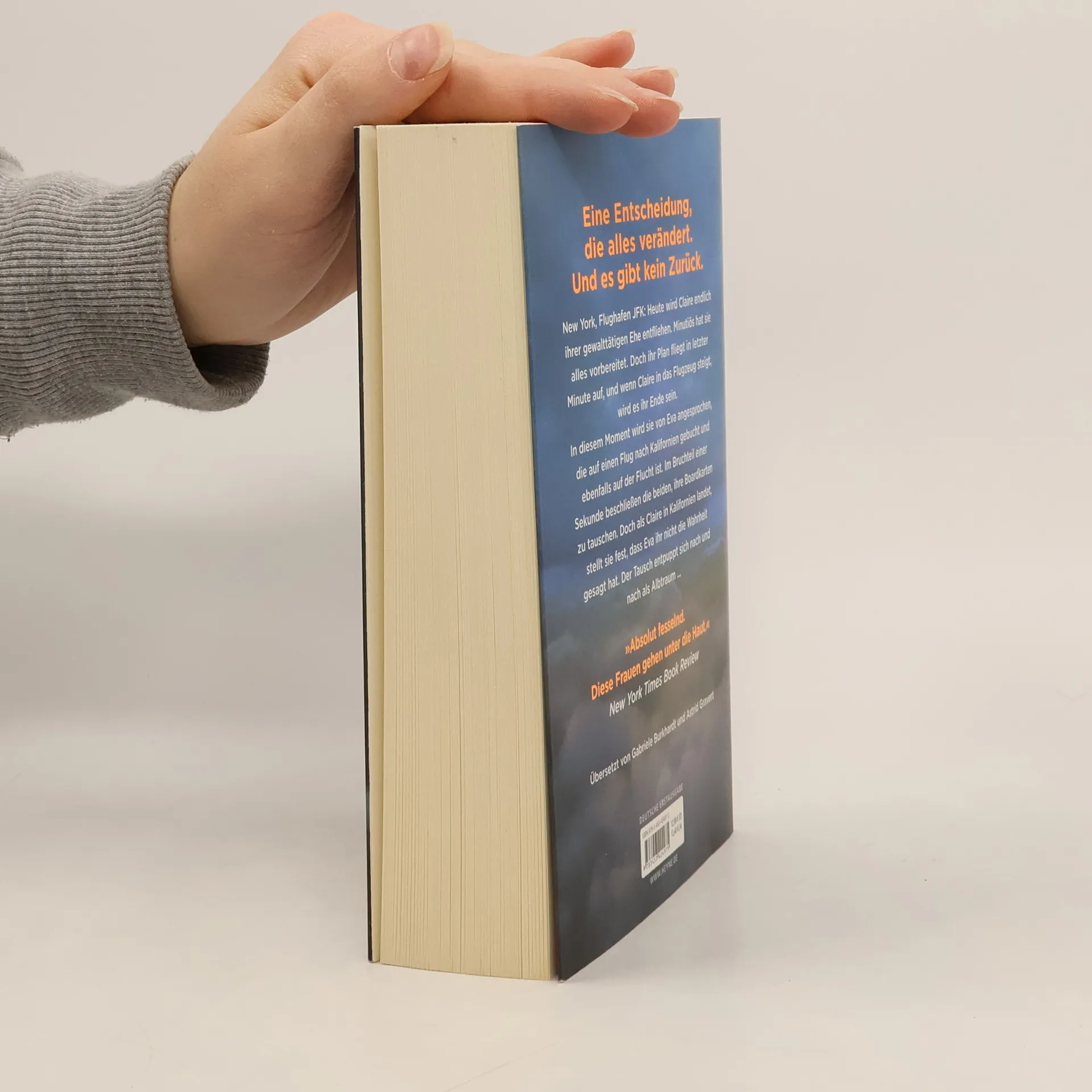 Zwei Frauen auf der Flucht. Eine Entscheidung, die alles verändert. Und kein Weg zurück. New York, Flughafen JFK: Claire soll nach Puerto Rico reisen, um ihren Mann, einen ehrgeizigen Politiker, beim Wahlkampf zu unterstützen. Doch in Wahrheit will sie nichts als fliehen – vor seinen gewalttätigen Übergriffen und der lückenlosen Kontrolle, die er über sie ausübt. Sie kommt mit Eva ins Gespräch, die bei ihrem schwerkranken Mann Sterbehilfe geleistet hat. Zu Hause in Kalifornien erwartet sie die Polizei. Innerhalb weniger Sekunden beschließen sie, die Bordkarten zu tauschen und sich gegenseitig ein neues Leben zu schenken.Erleichtert landet Claire in Kalifornien. In Evas Haus gibt es allerdings keine Hinweise auf einen Ehemann. Dann erfährt sie, dass das Flugzeug nach Puerto Rico abgestürzt ist. Und kurz darauf entdeckt sie die vermeintlich abgestürzte Eva in einer Fernsehreportage über das Unglück. Lebendig. Hat sie die Flucht in das Leben einer Anderen am Ende doch nur in eine Falle gelockt?