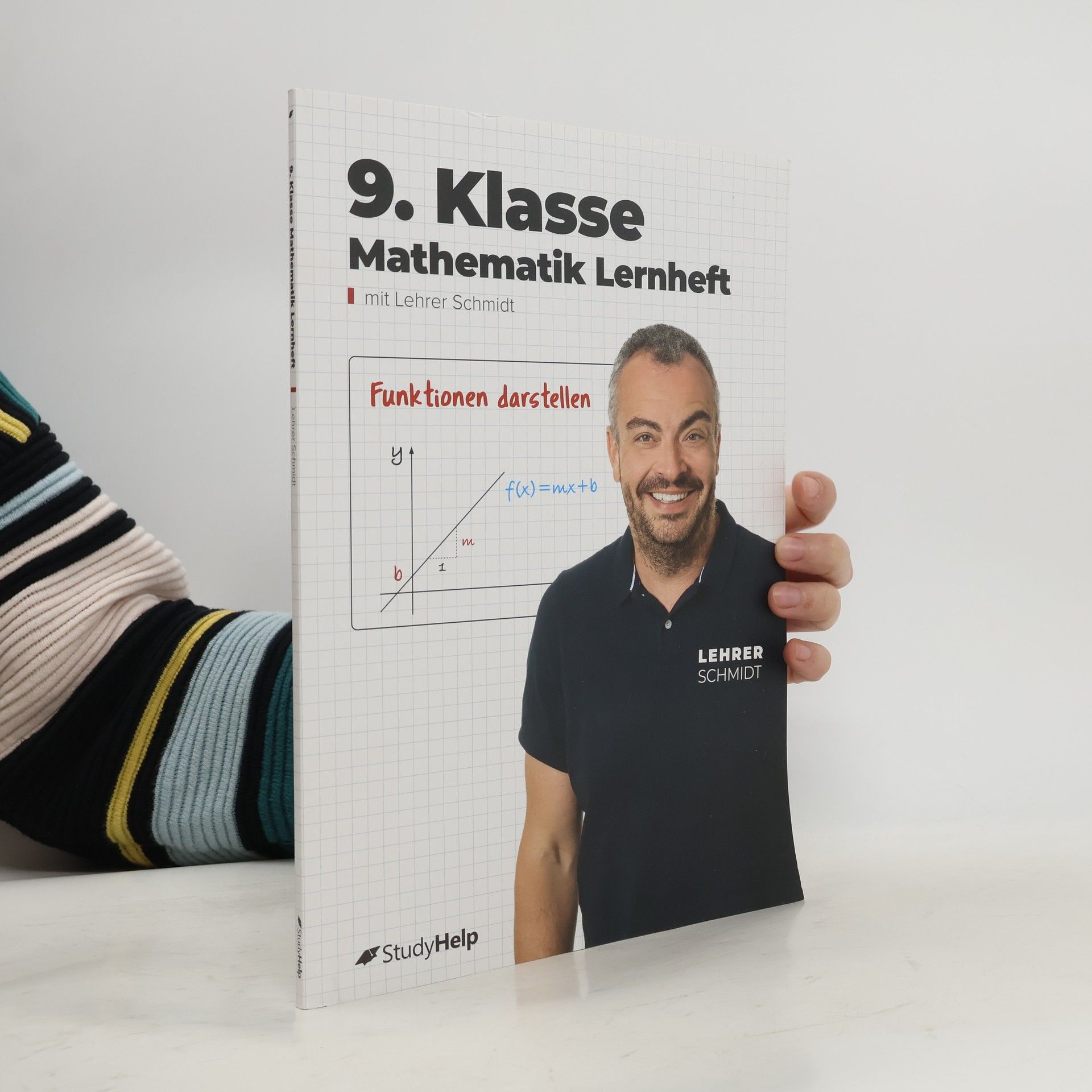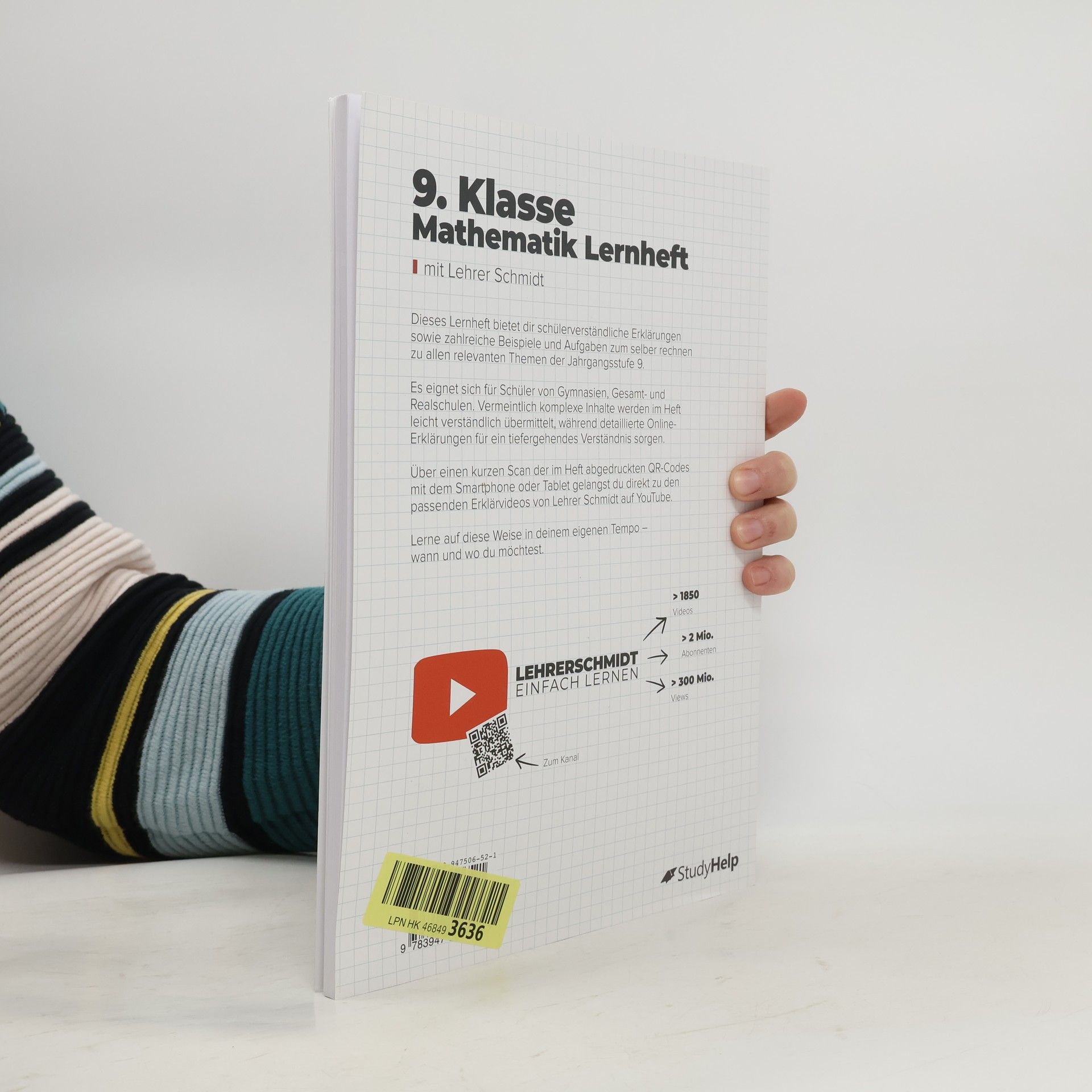 Unser Lernheft hilft dir mit Lernvideos von Lehrer Schmidt, auch in Zeiten von Home-Schooling, nicht den Überblick zu verlieren! 100 Seiten anschauliche Erklärungen 87 Lernvideos von Lehrer Schmidt 48 Aufgaben inkl. Lösungen Dieses Lernheft steckt voller Erklärungen, Beispielaufgaben, Aufgaben und Lösungen zu allen relevanten Themen der 9. Klasse für Gymnasien, Gesamt-, Haupt- und Realschulen. Ganz egal, ob du einfach nur den aktuellen Stoff vertiefen oder bereits in der Schule gelerntes wiederholen willst, hier wirst du fündig. Vermeintlich komplizierte Zusammenhänge sind in einer für Schüler vollkommen verständlichen Sprache dargestellt. Außerdem findest du zu den Themen alle Formeln, Skizzen und was sonst noch notwendig ist, um den Sachverhalt zu verstehen. Als ergänzendes Lernmaterial stehen dir dank der QR-Codes im Heft themenbasierte Erklärvideos von Lehrer Schmidt sofort zur Verfügung. Scanne hierzu mit deinem Smartphone oder Tablet den QR-Code ab und sieh dir ein auf dein Kapitel zugeschnittenes Video an. Auf diese Weise kannst du dich optimal auf mathematische Inhalte vorbereiten und wichtige Themen wiederholen Inhaltsverzeichnis Rationale Zahlen und Proportionalität Prozent- und Zinsrechnung Reelle Zahlen Potenzen Funktionen Flächensätze Geometrische Abbildungen Quadratische Gleichungen Lineare Gleichungssysteme Flächenberechnungen Körperberechnungen Daten und Zufall Lösungen