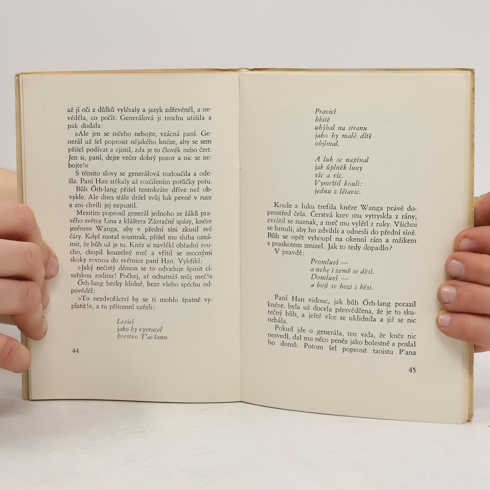 Dvě povídky Kung-an ze středověké Číny. Básnické vložky v prvé povídce přebásnila Jarmila Urbánková, v druhé povídce Dr. Pavel Eisner.