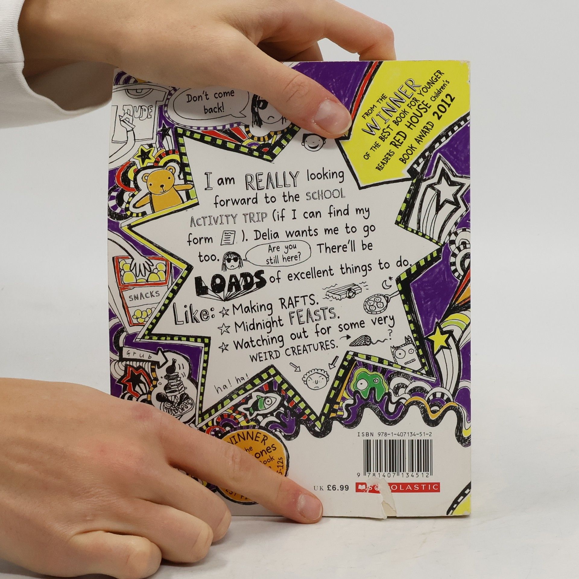 This takes the form of Tom's battered homework diary - crammed with his doodles and stories. "Exciting News! Mr Fullerman announces that class 5F are going on an 'Activity Break'! Which should be fun. As long as I don't get stuck in a group with anyone who snores or worse still with . . . . . . Marcus Meldrew. Delia is already threatening to paint my room funny colours while I'm away. Which is annoying. I just hope the only surprise I have when I get home is the new pet that I hear Mum and Dad talking about. Because I've always wanted a pet!"