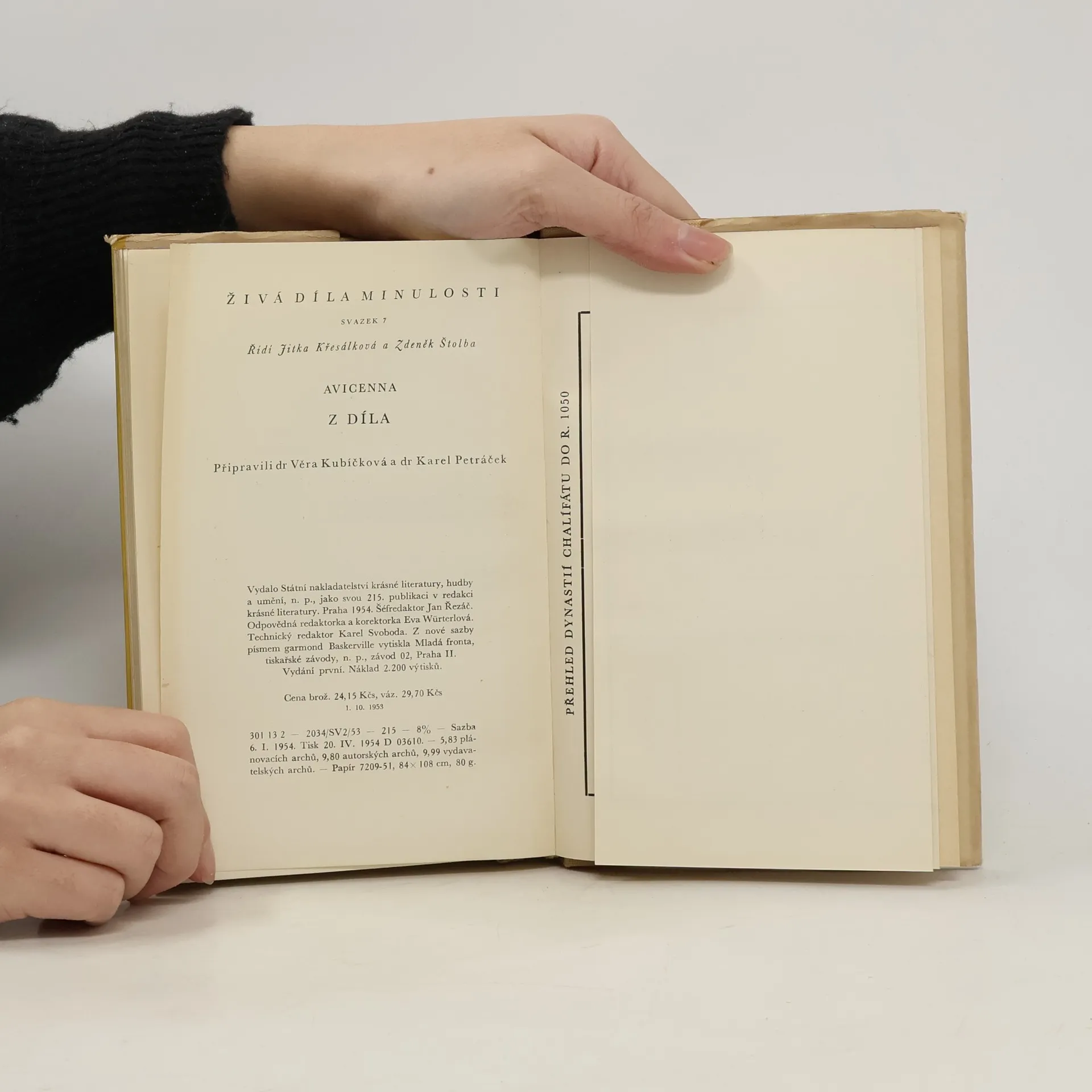 Kniha, určená širokému okruhu čtenářů, přináší výbor z básnického a vědeckého díla arabského filosofa Avicenny, jednoho z velkých bojovníků středověku za svobodné lidské myšlení. Připojen je též vlastní životopis Avicennův. V průvodních studiích je zachycena jednak historie arabského chalífátu, jednak vývoj arabské vědy a současně vysvětlena filosofická soustava Avicennova.