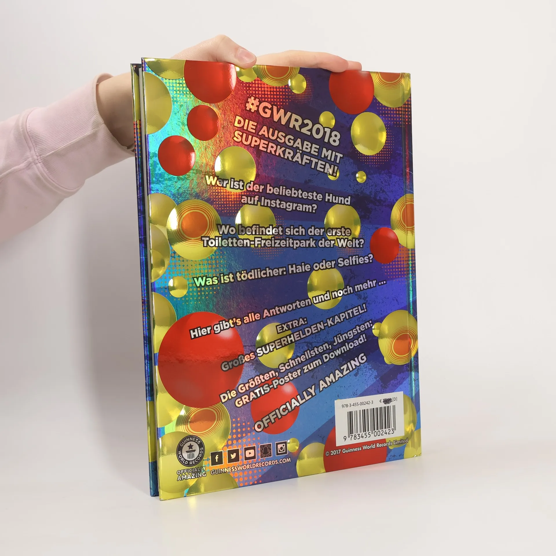 Der Rekordhalter unter den Rekordbüchern ist zurück! Die neue Ausgabe zeigt unglaubliche Leistungen, spektakuläre Stunts, bahnbrechende Forschungsergebnisse und einmalige sportliche Heldentaten aus dem vergangenen Jahr. Die Größten, die Höchsten, die Schnellsten – GUINNESS WORLD RECORDS 2018 befasst sich auf ganz besondere Weise mit Superlativen aller Art: Einzigartige doppelseitige Infografiken zeigen die faszinierendsten Rekorde zu verschiedenen Themen. Ist das längste Sofa länger als der längste Zug? Überragt das größte Osterei den größten Schneemann?