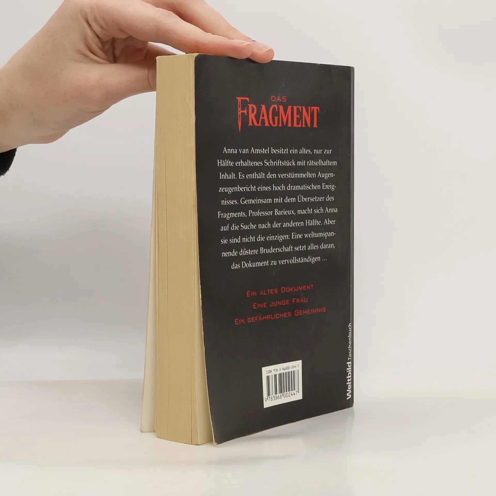 Eine alte Schrift, ein gefährliches Geheimnis Anna van Amstel kommt zu einem nur zur Hälfte erhaltenen Schriftstück. Der Inhalt gibt ihr und Professor Barieux, dem Übersetzer, Rätsel auf. Gemeinsam machen sie sich auf die Suche nach der anderen Hälfte. Doch auch eine gefährliche Bruderschaft jagt dem geheimnisvollen Fragment hinterher.