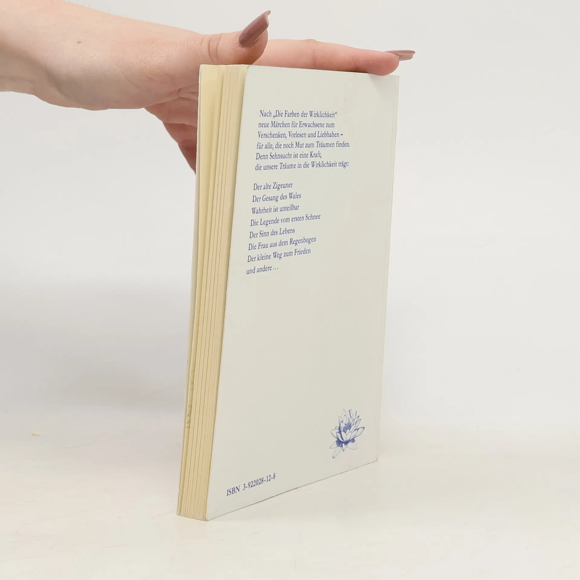 Nach „ Farben der Wirklichkeit “ neue Märchen für Erwachsene zum Verschenken, Vorlesen, und Liebhaben - für alle, die noch Mut zum Träumen finden. Denn Sehnsucht ist eine Kraft, die unsere Träume in die Wirklichkeit trägt: - Der alte Zigeuner - Der Gesang des Wales - Wahrheit ist unteilbar - Die Legende vom ersten Schnee - Der Sinne des Lebens - Die Frau aus dem regenbogen - Der kleine Weg zum Frieden und andere...