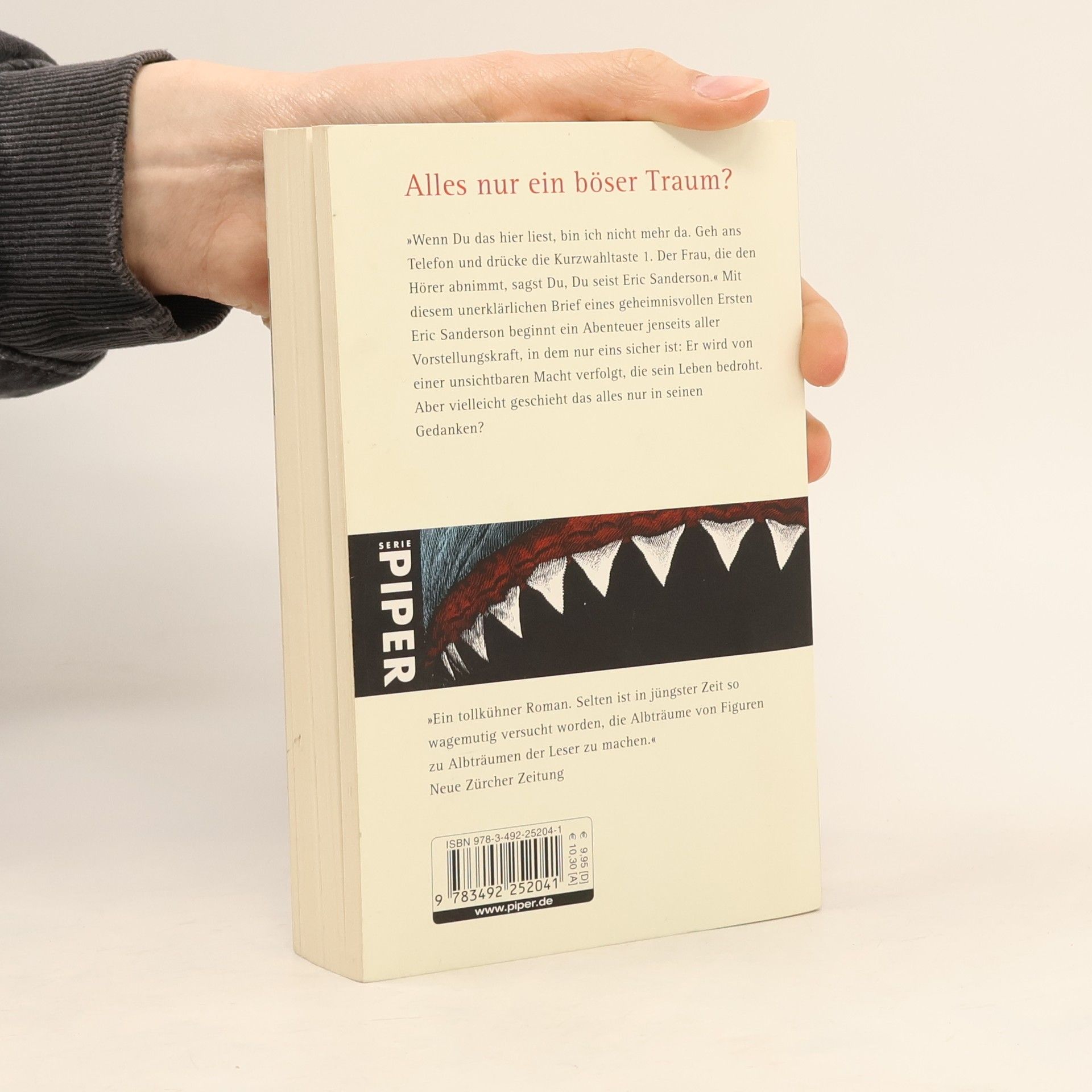 'Wenn Du das hier liest, bin ich nicht mehr da. Geh ans Telefon und drücke die Kurzwahltaste 1. Der Frau, die den Hörer abnimmt, sagst Du, Du seist Eric Sanderson.' Mit diesem unerklärlichen Brief, gezeichnet 'der Erste Eric Sanderson', beginnt für Eric Sanderson ein Abenteuer jenseits aller Vorstellungskraft, in dem nur eins sicher ist: Er wird von einer unsichtbaren Macht verfolgt, die sein Leben bedroht. Aber vielleicht geschieht das alles nur in seinen Gedanken?