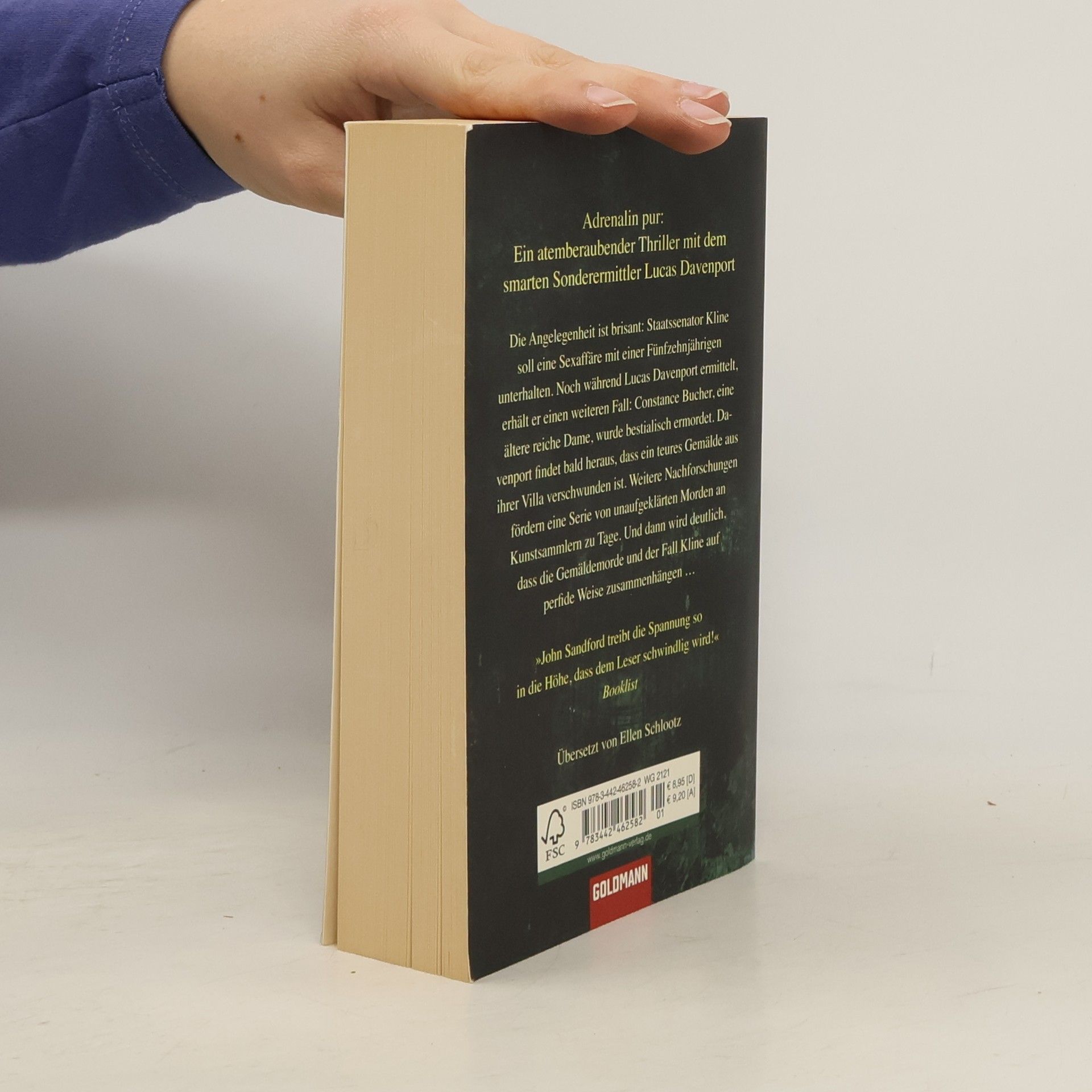 Adrenalin pur! Die Angelegenheit ist brisant: Staatssenator Kline soll eine Sexaffäre mit einer Fünfzehnjährigen unterhalten. Noch während Lucas Davenport ermittelt, erhält er einen weiteren Fall: Constance Bucher, eine ältere, reiche Dame, wurde bestialisch ermordet. Davenport findet bald heraus, dass ein teures Gemälde, das in ihrer Villa versteckt war, verschwunden ist. Weitere Nachforschungen fördern eine Serie von unaufgeklärten Morden an Kunstsammlern zu Tage. Und dann wird deutlich, dass die Gemäldemorde und der Fall Kline auf perfide Weise zusammenhängen. Der neue atemberaubende Thriller mit dem smarten Sonderermittler Lucas Davenport.