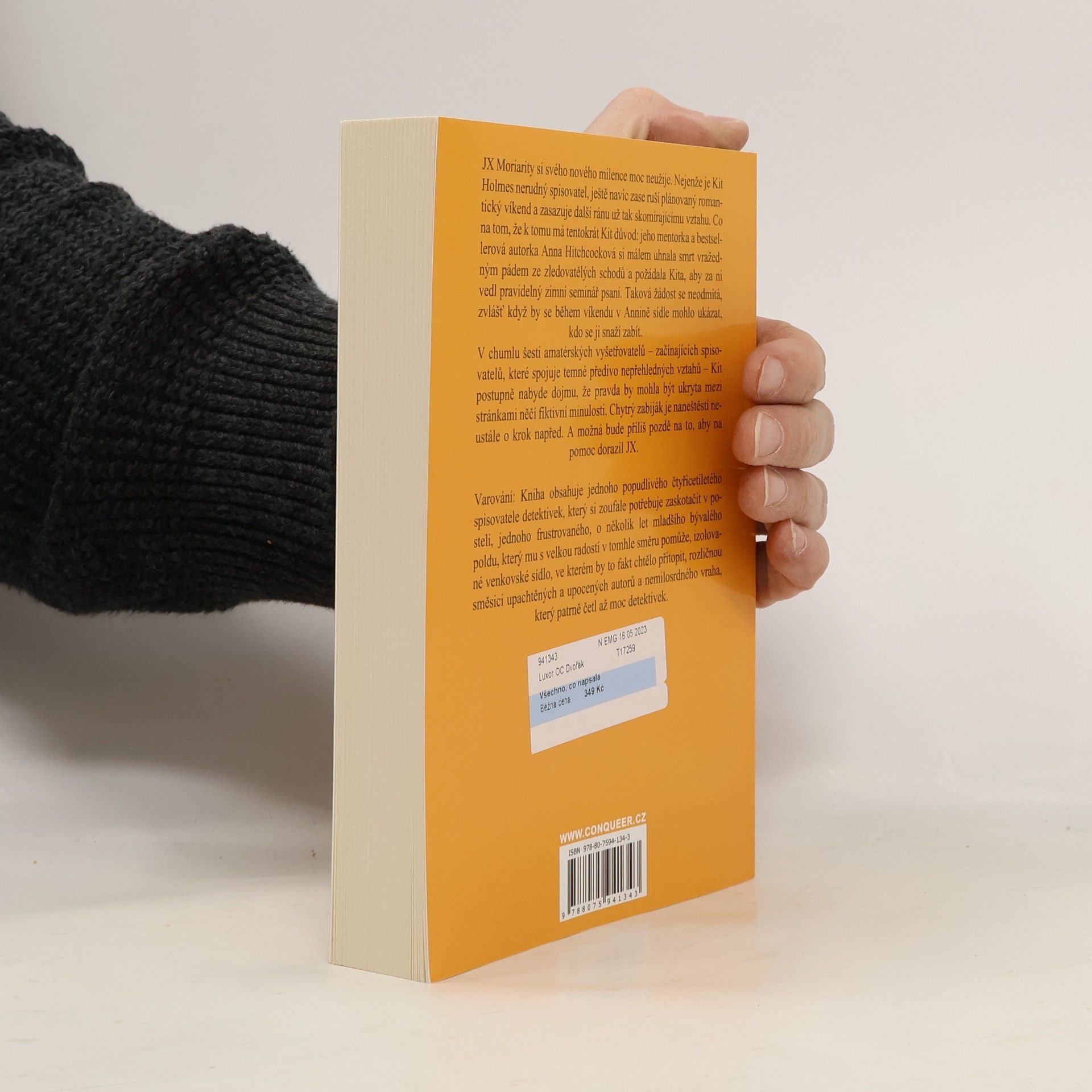 JX Moriarity si svého nového milence moc neužije. Nejenže je Kit Holmes nerudný spisovatel, ještě navíc zase ruší plánovaný romantický víkend a zasazuje další ránu už tak skomírajícímu vztahu. Co na tom, že k tomu má tentokrát Kit důvod: jeho mentorka a bestsellerová autorka Anna Hitchcocková si málem uhnala smrt vražedným pádem ze zledovatělých schodů a požádala Kita, aby za ni vedl pravidelný zimní seminář psaní. Taková žádost se neodmítá, zvlášť když by se během víkendu v Annině sídle mohlo ukázat, kdo se ji snaží zabít.V chumlu šesti amatérských vyšetřovatelů – začínajících spisovatelů, které spojuje temné předivo nepřehledných vztahů – Kit postupně nabyde dojmu, že pravda by mohla být ukryta mezi stránkami něčí fiktivní minulosti. Chytrý zabiják je naneštěstí neustále o krok napřed. A možná bude příliš pozdě na to, aby na pomoc dorazil JX.
