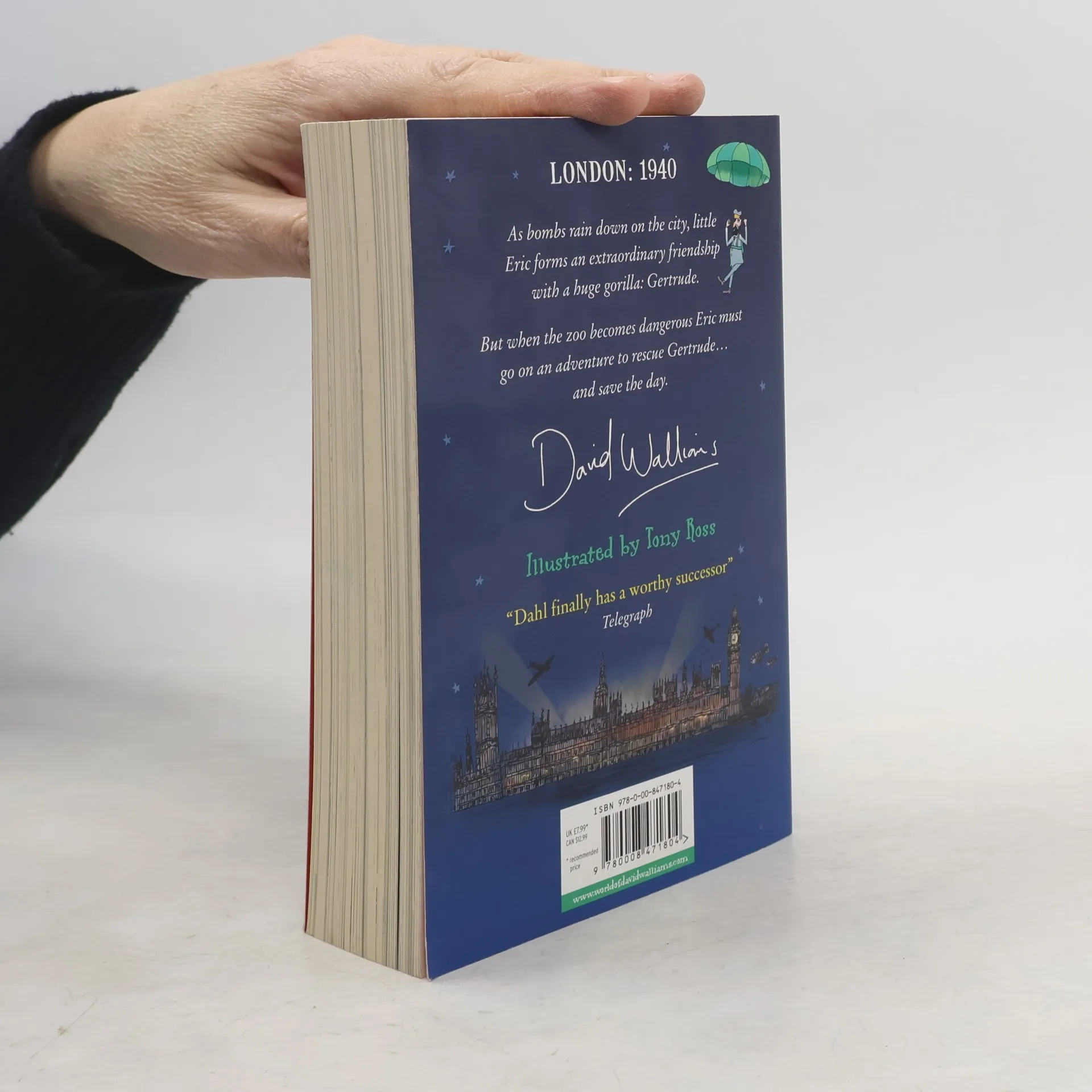 Go back in time with No. 1 bestselling author David Walliams for a whizz-bang epic adventure of action, laughter and secret plots - and the extraordinary friendship between a little boy and a huge gorilla that just might save the day... 1940. Britain is at war with Nazi Germany. Eleven-year-old Eric spends his days at the place that makes him most happy: London Zoo. And there's one animal in particular he loves: Gertrude the gorilla. With bombs falling all over London, Eric must rescue Gertrude. Together with his Uncle Sid, a keeper at the zoo, the three go on the run. But while hiding out at the seaside they uncover a top-secret Nazi plot... Join David Walliams on this action-packed, laugh-out-loud adventure for all the family!
