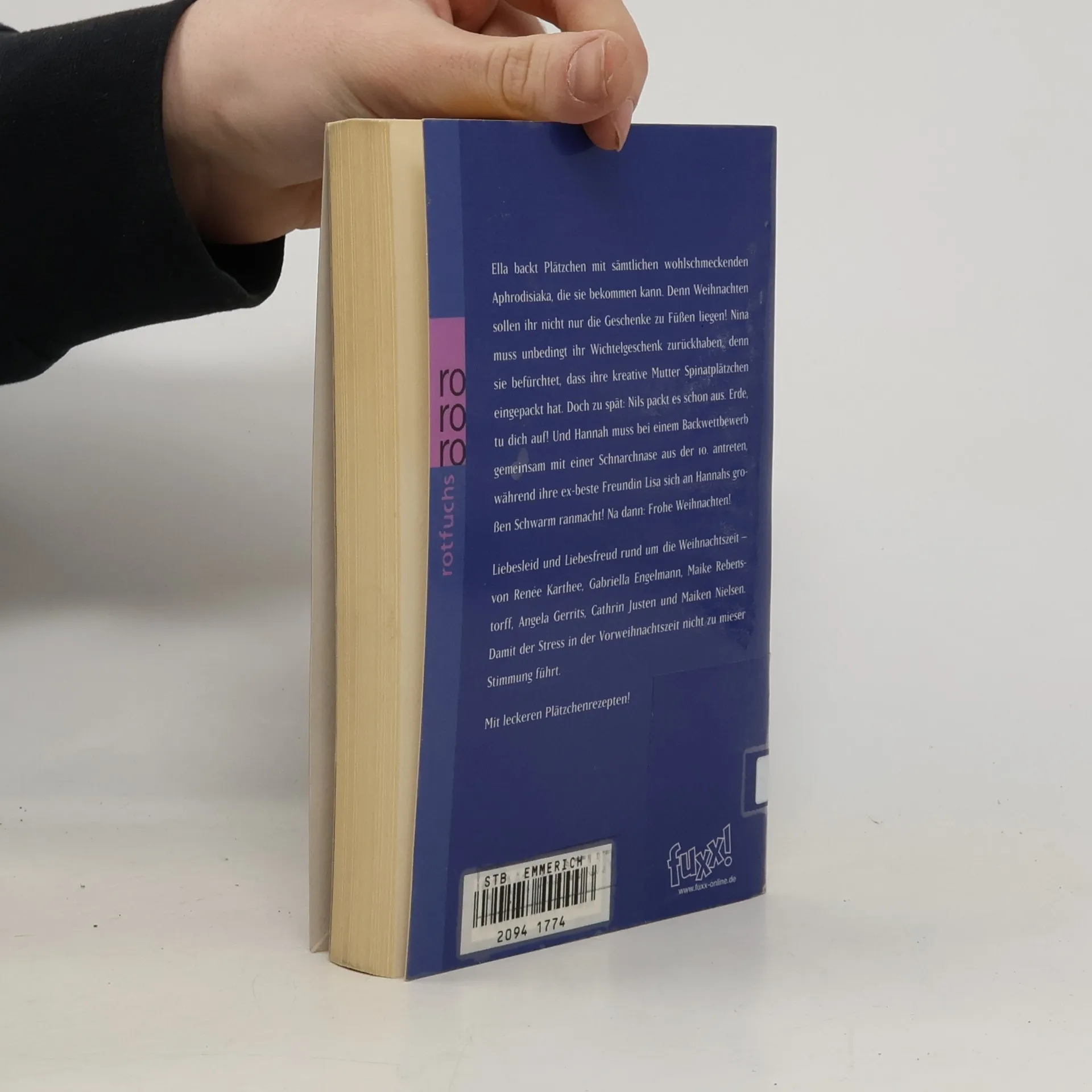 Ella backt Plätzchen mit sämtlichen wohlschmeckenden Aphrodisiaka, die sie bekommen kann. Denn Weihnachten sollen ihr nicht nur die Geschenke zu Füßen liegen! Nina muss unbedingt ihr Wichtelgeschenk zurückhaben, denn sie befürchtet, dass ihre kreative Mutter Spinatplätzchen eingepackt hat. Doch zu spät: Nils packt es schon aus. Erde, tu dich auf! Und Hannah muss bei einem Backwettbewerb gemeinsam mit einer Schnarchnase aus der 10. antreten, während ihre ex-beste Freundin Lisa sich an Hannahs gro-ßen Schwarm ranmacht! Na dann: Frohe Weihnachten! Liebesleid und Liebesfreud rund um die Weihnachtszeit – von Renée Karthee, Gabriella Engelmann, Maike Rebens-torff, Angela Gerrits, Cathrin Justen und Maiken Nielsen. Damit der Stress in der Vorweihnachtszeit nicht zu mieser Stimmung führt. Mit leckeren Plätzchenrezepten!