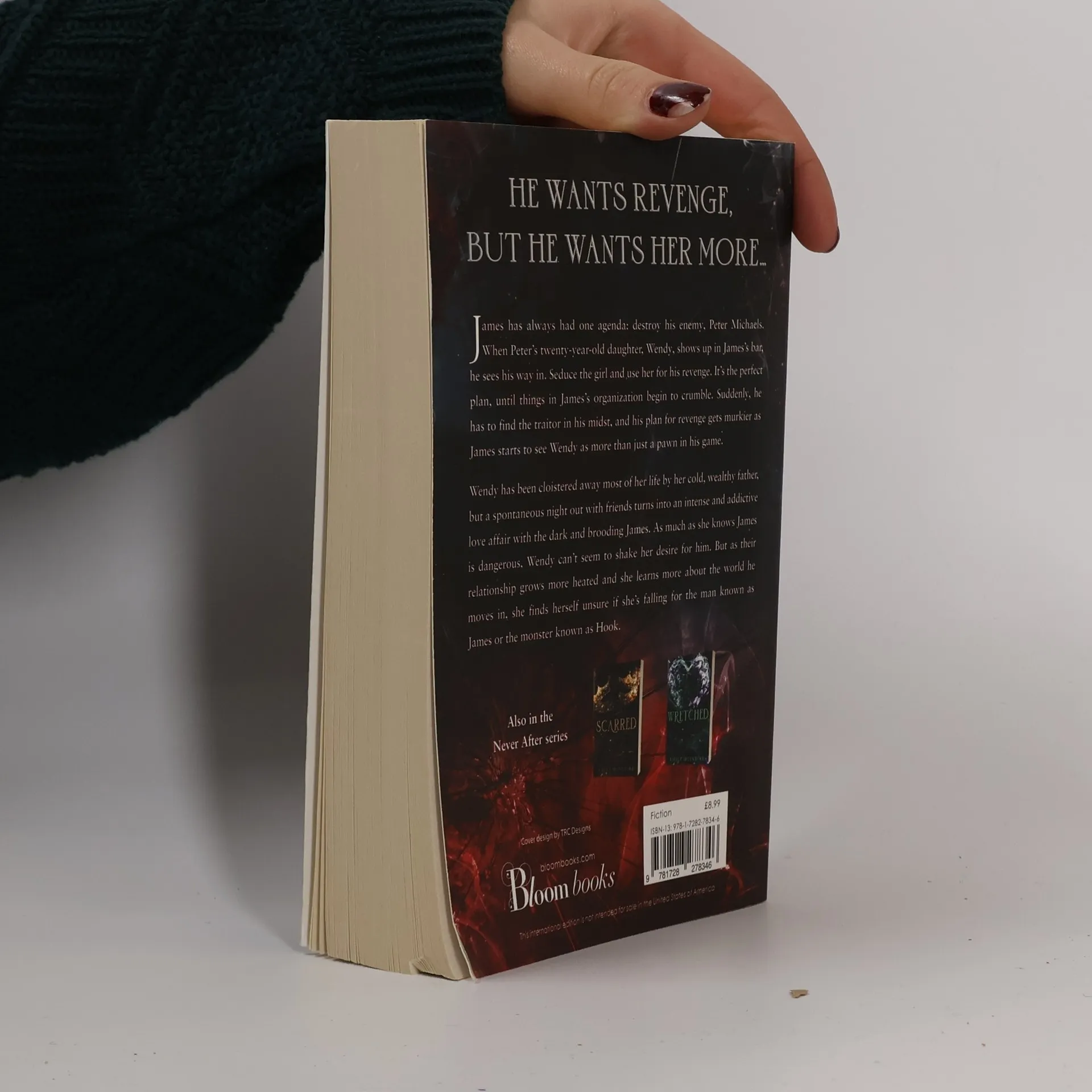 He wants revenge, but he wants her more… James has always had one agenda: destroy his enemy, Peter Michaels. When Peter’s twenty-year-old daughter Wendy shows up in James’s bar, he sees his way in. Seduce the girl and use her for his revenge. It’s the perfect plan, until things in James’s organization begin to crumble. Suddenly, he has to find the traitor in his midst, and his plan for revenge gets murkier as James starts to see Wendy as more than just a pawn in his game. Wendy has been cloistered away most of her life by her wealthy cold father, but a spontaneous night out with friends turns into an intense and addictive love affair with the dark and brooding James. As much as she knows James is dangerous, Wendy can’t seem to shake her desire for him. But as their relationship grows more heated and she learns more about the world he moves in, she finds herself unsure if she’s falling for the man known as James or the monster known as Hook.