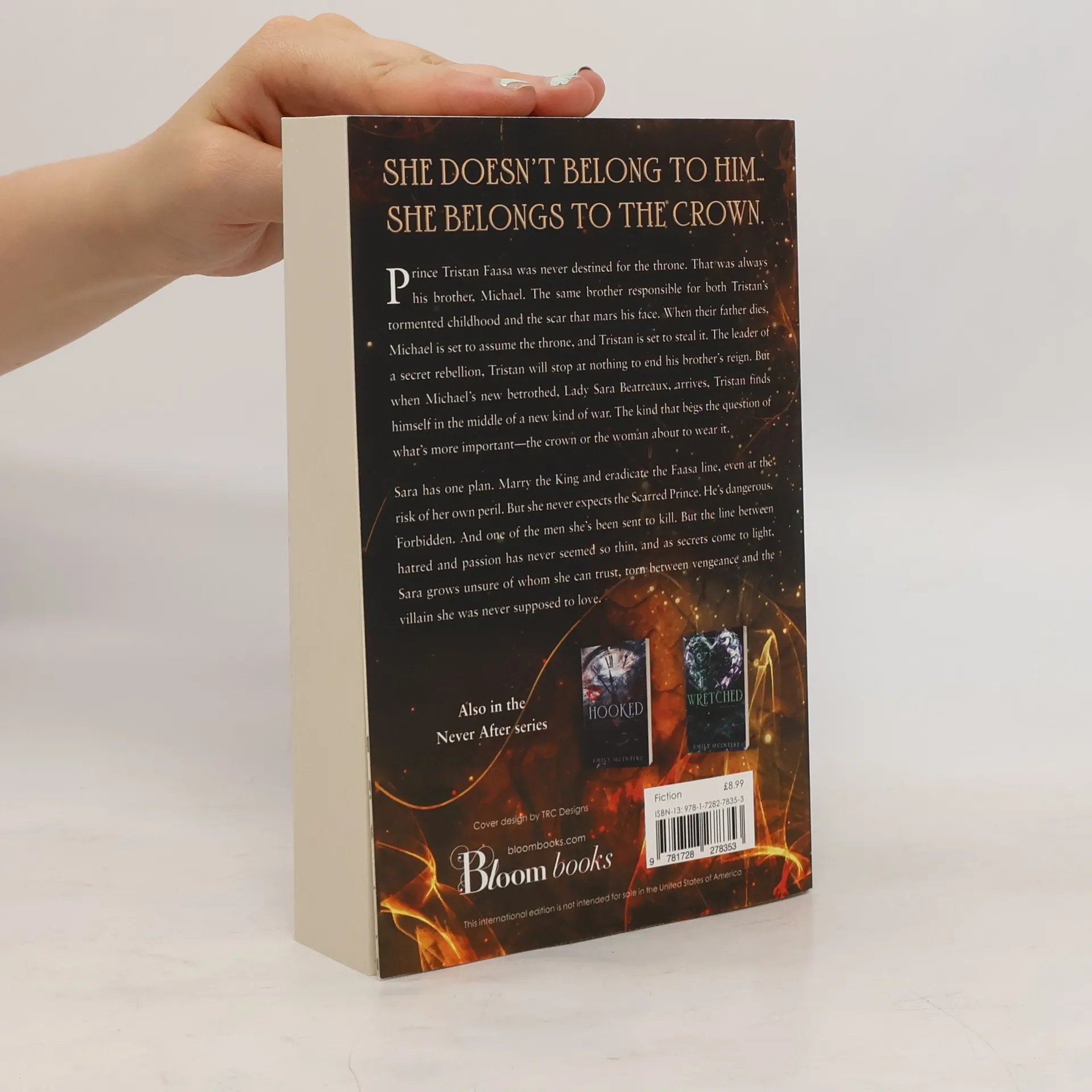 From BookTok sensation Emily McIntire comes a dark and delicious fractured fairy tale in her fan-favorite Never After series. She doesn't belong to him...she belongs to the crown. Prince Tristan Faasa was never destined for the throne. That was always his brother, Michael. The same brother responsible for both Tristan's tormented childhood and the scar that mars his face. When their father dies, Michael is set to assume the throne, and Tristan is set to steal it. The leader of a secret rebellion, Tristan will stop at nothing to end his brother's reign. But when Michael's new betrothed, Lady Sara Beatreaux arrives, Tristan finds himself in the middle of a new kind of war. The kind that begs the question of what's more important, the crown or the woman about to wear it. Sara has one plan. Marry the King and eradicate the Faasa line, even at the risk of her own peril. But she never expects the Scarred Prince. He's dangerous. Forbidden. And one of the men she's been sent to kill. But the line between hatred and passion has never seemed so thin, and as secrets come to light, Sara grows unsure of whom she can trust-torn between vengeance and the villain she was never supposed to love.
