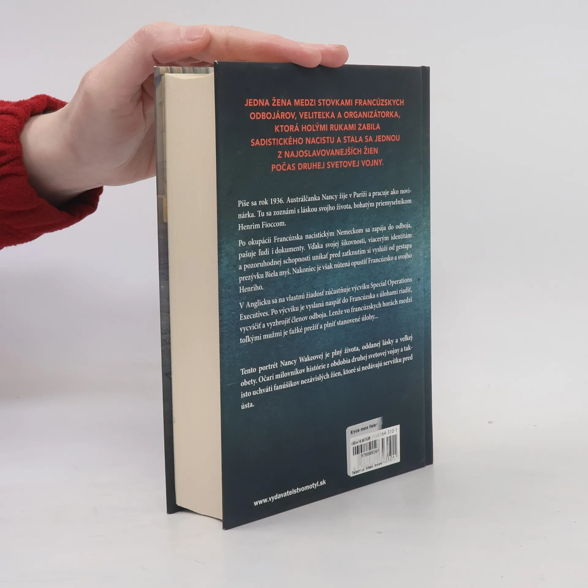 Strhujúci román založený na skutočnom príbehu špiónky Nancy Wakeovej, ktorá holými rukami zabila nacistu a stala sa jednou z najoslavovanejších žien počas druhej svetovej vojny. V roku 1936 sa štyri poprepájané dejové línie točia okolo krycích mien, ktoré odvážna reportérka Nancy používa vo vojne v Paríži. Klamstvá ju privádzajú k jej budúcemu manželovi, bohatému francúzskemu priemyselníkovi Henriho Fioccu, čím získava ďalšie krycie meno. Ako Lucienne Carlierová pašuje ľudí a dokumenty cez hranicu, jej šikovnosť a schopnosť unikať pred gestapom jej vyniesli prezývku Biela myš. Po vypísaní odmeny na jej hlavu musí ujsť z Francúzska. Počas tréningu v britskom špeciálnom oddelení ju spolubojovníci spoznávajú ako Hélene. Po skoku z lietadla sa vracia na francúzsku pôdu ako Madam Andrée, stáva sa kľúčovou postavou francúzskeho odporu. Jej najsilnejšími zbraňami sú skvelý úsudok, ikonický červený rúž a schopnosť získavať zbrane od Spojencov. Avšak, ak nepriateľ odhalí, že tieto štyri ženy sú jednou a tou istou osobou, jej osud a osud jej blízkych sú v ohrození. Tento portrét Nancy Wakeovej je plný života, oddanej lásky a veľkej obety, pričom očarí milovníkov histórie druhej svetovej vojny a fanúšikov nezávislých žien.