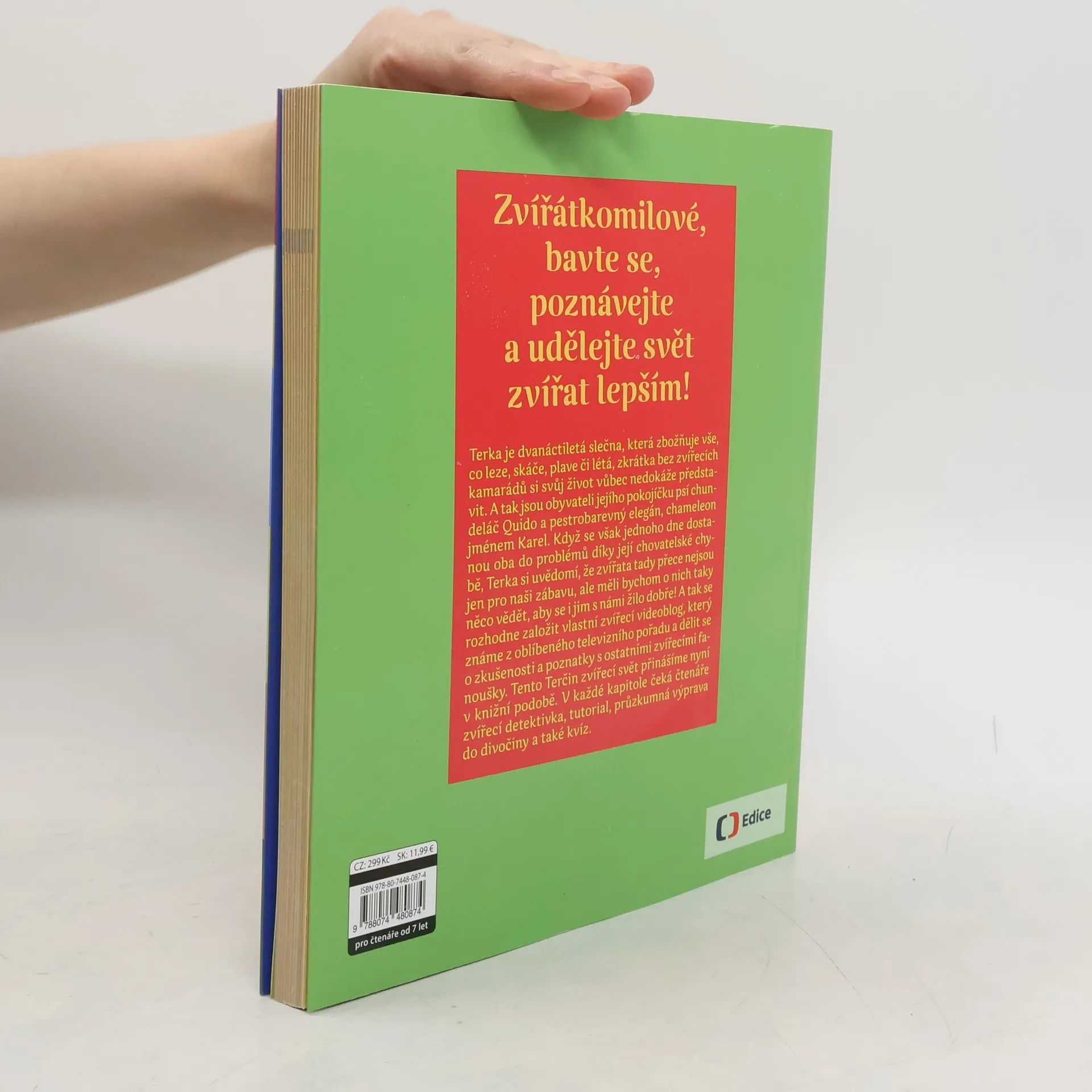 Terka je dvanáctiletá slečna, která si bez zvířecích kamarádů život nedokáže představit. A tak jsou obyvateli jejího pokojíčku psí chundeláč Quido a chameleon Karel. Když se ale jednoho dne dostanou oba do problémů díky její chovatelské chybě, Terka si uvědomí, že zvířata tady přece nejsou jen pro naši zábavu, ale měli bychom o nich taky něco vědět, aby se i jim dobře žilo. Terčin zvířecí svět, který znáte i z TV cyklu, v každé kapitole přináší zvířecí detektivku, tutorial a výpravu do domácí divočiny.