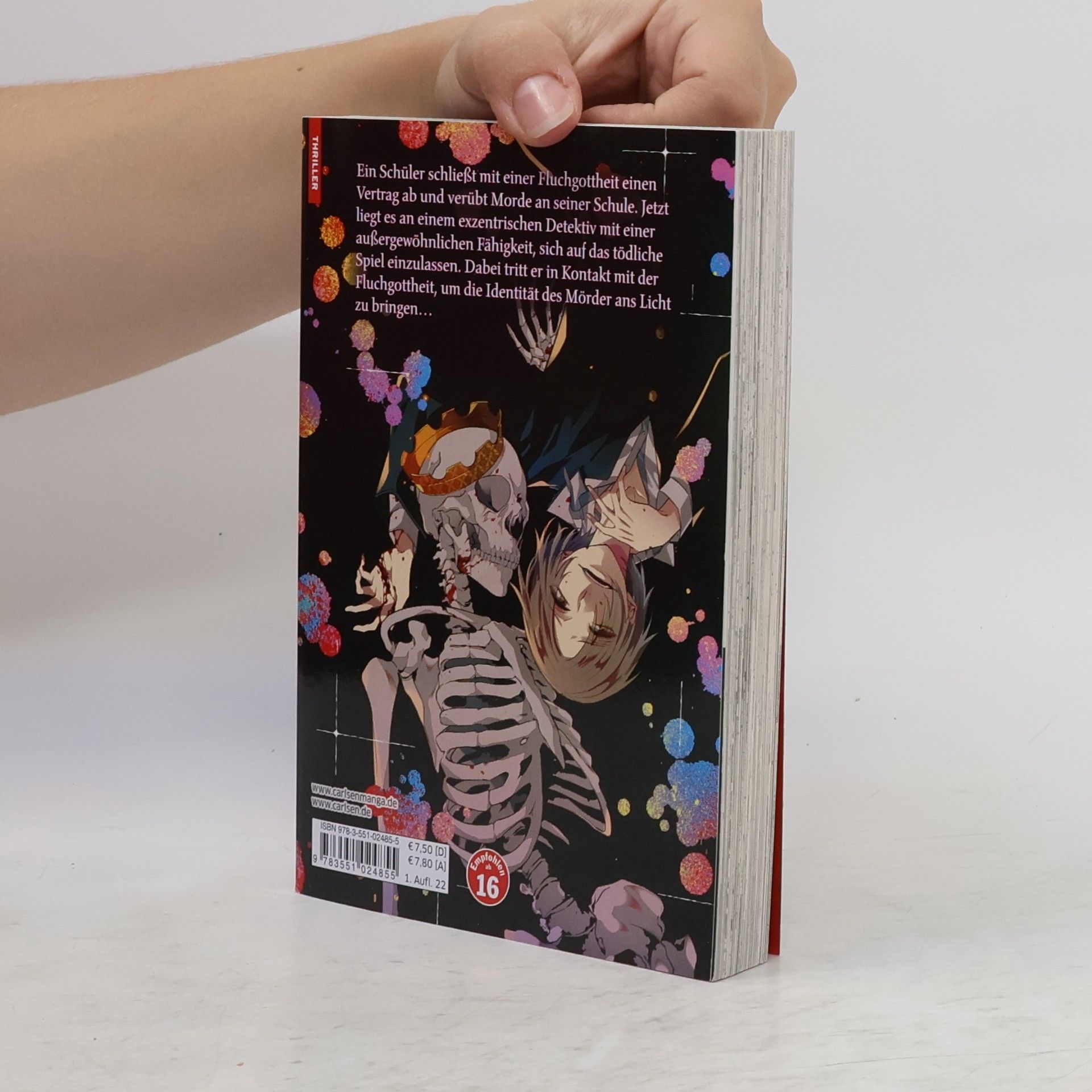 Ein tödlicher Wettlauf gegen die Zeit! Der Schultag an der Yamimori Highschool beginnt wie jeder andere Tag – bis ein Handy klingelt und so ein tödliches Game in Gang setzt. Der Schüler Mikiya muss in den nächsten 30 Tagen 30 Menschen töten, um seinem Schicksal, das weit schlimmer als der Tod wäre, zu entgehen. Der unfassbare heiße neue Biolehrer Saeyama muss den Fluch brechen, ohne selbst zum Opfer von Mikiya zu werden. Wer sich auf Verträge mit Fluchgottheiten einlässt, muss mit den Konsequenzen leben… Weitere Infos: - Hochspannung in 4 Bänden abgeschlossen - Für Fans der Netflix-Serien SQUID GAME und ALICE IN BORDERLAND - Mit Farbseiten - Für Fans von DEATH NOTE - Ab 16 Jahren - Für Jungs, Mädchen und alle Geschlechter