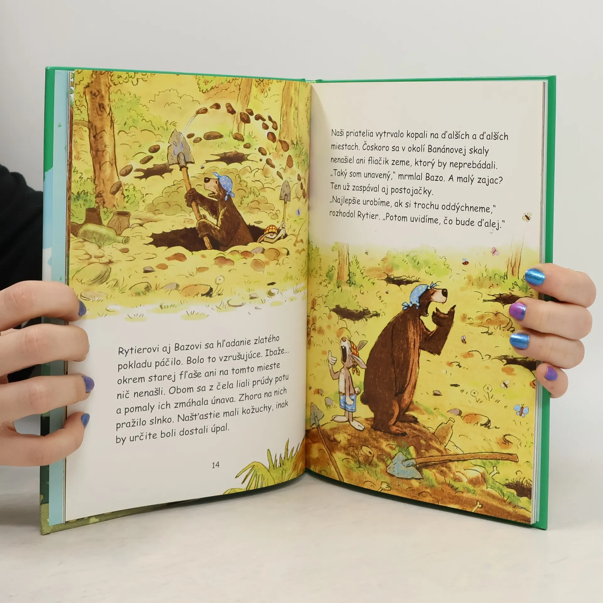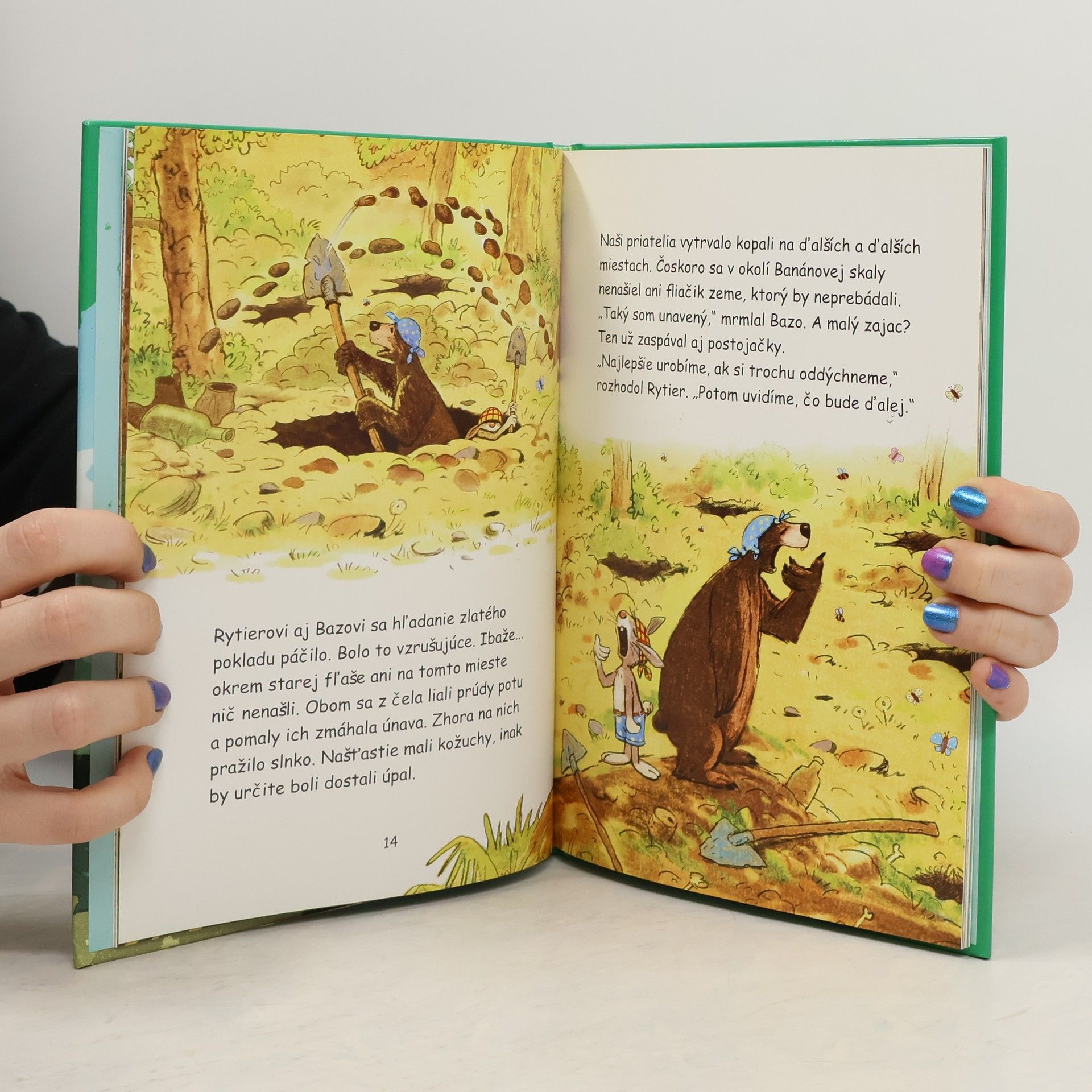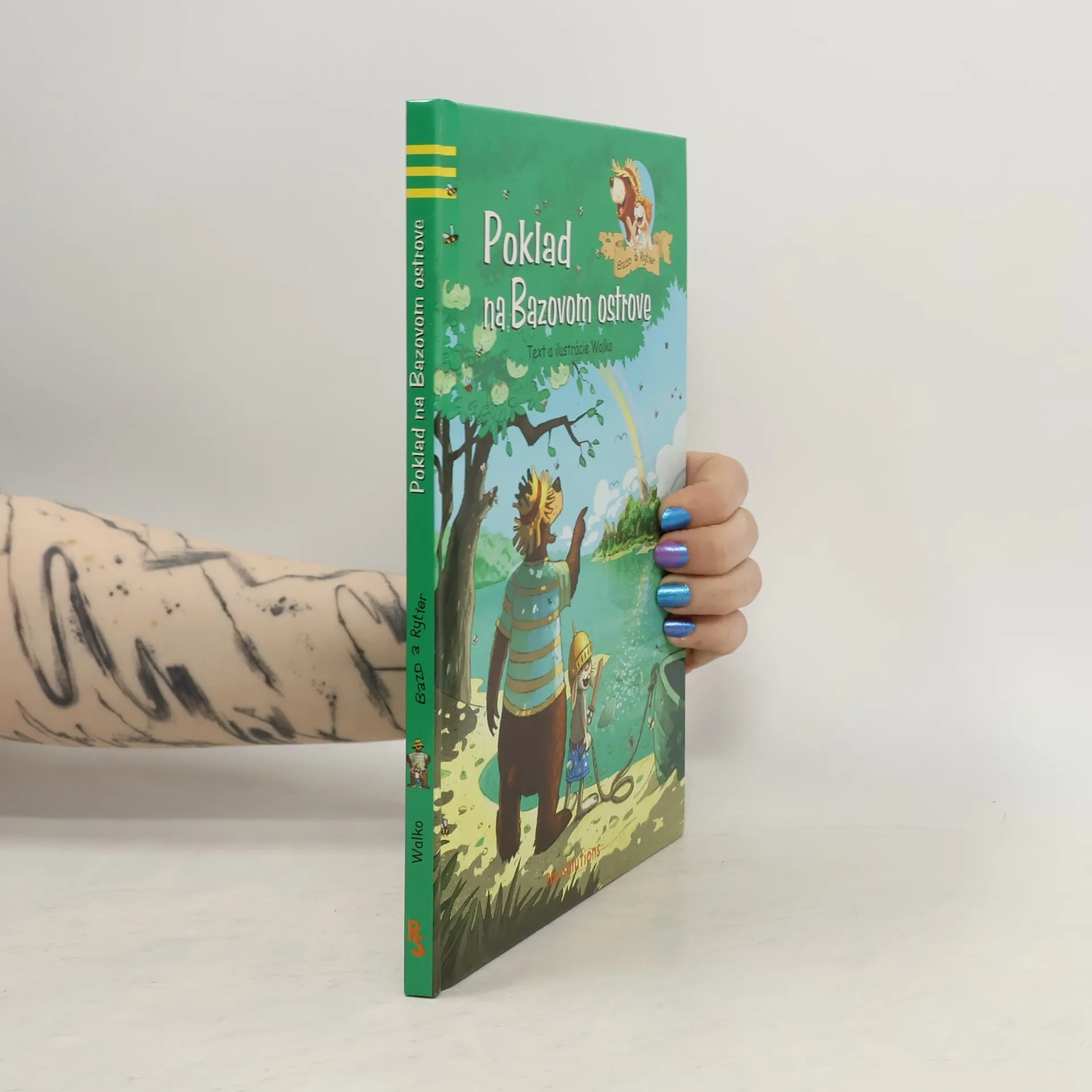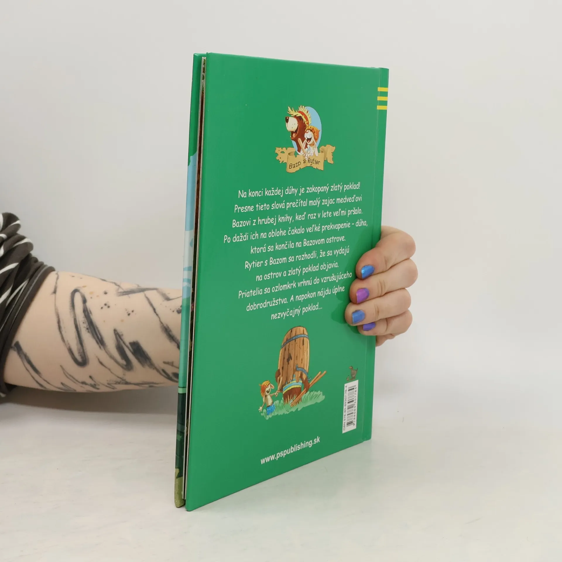 Na konci každej dúhy je zakopaný zlatý poklad! Presne tieto slová prečítal malý zajac medveďovi Bazkovi z hrubej knihy, keď raz v lete veľmi pršalo. Po daždi ich na oblohe čakalo veľké prekvapenie - dúha, ktorá sa končila na Bazovom ostrove. Rytier s Bazkom sa rozhodli, že sa vydajú na ostrov a zlatý poklad objavia. Priatelia sa ozlomkrk vrhnú do vzrušujúceho dobrodružstva. A napokon nájdu úplne nezvyčajný poklad...