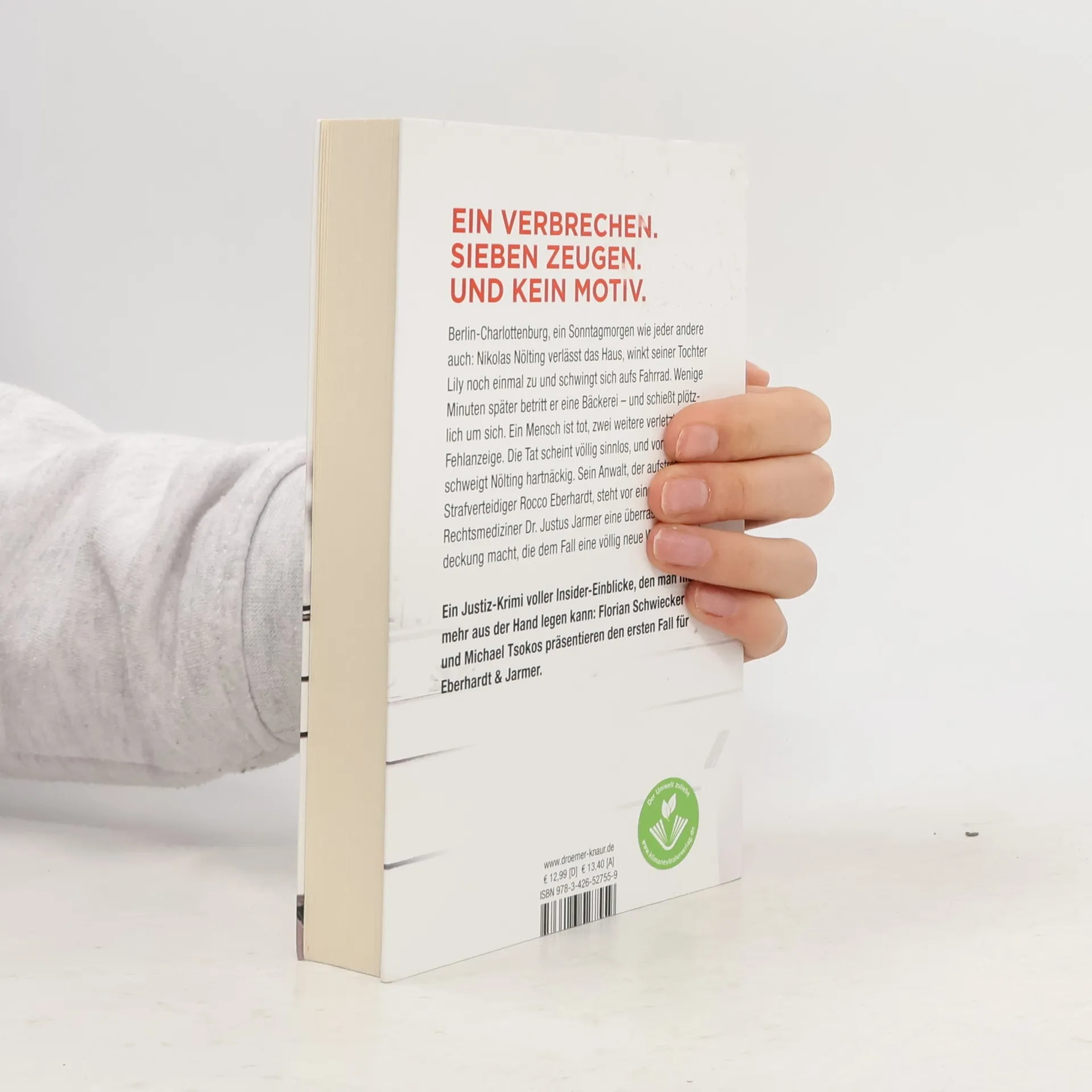 Hochspannend und 100% authentisch: Der erste Teil einer neuen Justiz-Krimi-Reihe aus Berlin bietet Insider-Einblicke des ehemaligen Strafverteidigers Florian Schwiecker und des Rechtsmediziners Michael Tsokos. An einem gewöhnlichen Sonntag verlässt der Verwaltungsbeamte Nikolas Nölting sein Haus in Berlin-Charlottenburg, winkt seiner Tochter zu und fährt zur Bäckerei. Plötzlich schießt er ohne Vorwarnung um sich. Ein Mensch ist tot, zwei weitere verletzt – und Nölting schweigt. Sein Anwalt Rocco Eberhardt steht vor einem Rätsel: Welches Motiv könnte der unauffällige Familienvater für diese Tat gehabt haben? Die Situation erscheint sinnlos, bis Dr. Justus Jarmer, der Rechtsmediziner, eine überraschende Entdeckung macht. Diese führt Eberhardt in einen Sumpf aus Korruption, Geldwäsche und Clan-Kriminalität. Doch die Auseinandersetzung mit der Berliner Unterwelt birgt große Gefahren. In dieser Justiz-Krimi-Reihe um Eberhardt und Jarmer gewähren die Autoren tiefen Einblick in ihren Berufsalltag: Schwiecker hat lange als Strafverteidiger gearbeitet, während Tsokos das Institut für Rechtsmedizin der Berliner Charité leitet.