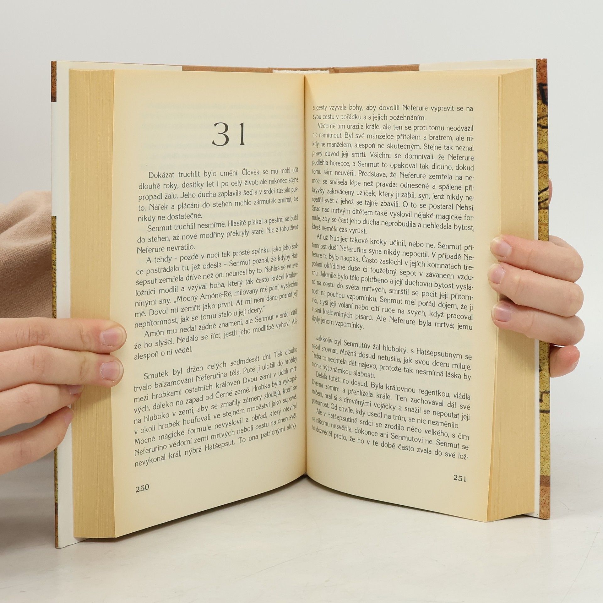 Historický román se zaměřuje na egyptskou královnu Hatšepsut z 15. století př.n.l., která zajistila své zemi dvacet let míru. Po smrti manžela Thutmose II. vládla jako regentka a později jako spoluvládkyně svého nevlastního syna Thutmose III., jednoho z nejvýznamnějších vládců. Autorka zachycuje klíčové události její vlády, včetně poznávacích výprav a vladařských úspěchů, a také příběh její velké, nikdy nepřiznané lásky k synovi thébského obchodníka. Důležitou součástí příběhu je její konflikt s Thutmosem III., dobyvačným válečníkem, který po čtyřiceti letech po její smrti ničí její památku. Děj se prolíná s osudovou láskou mezi Hatšepsutou a Senmutem, který se zpočátku zdráhá podpořit její neobvyklé úsilí o titul krále Egypta, ale posléze se stává jejím dvorním hodnostářem a architektem. Vytváří pro ni chrámy a monumenty, které mají zajistit její nesmrtelnost. Po Hatšepsutině smrti se Thutmóse III. snaží zničit všechny stopy po ní a Senmutovi, avšak jeho snaha je marná. Příběh tak vypráví o ženě, která měla odvahu postavit se proti zažitým pořádkům své doby.