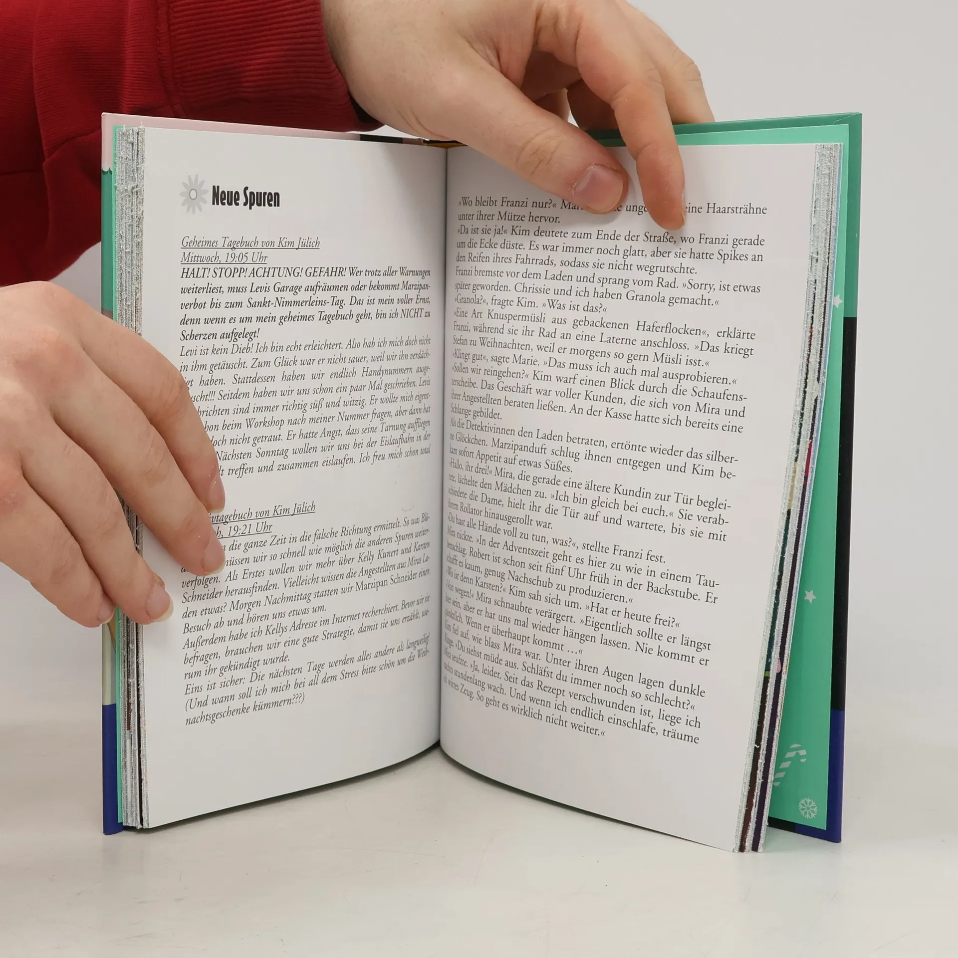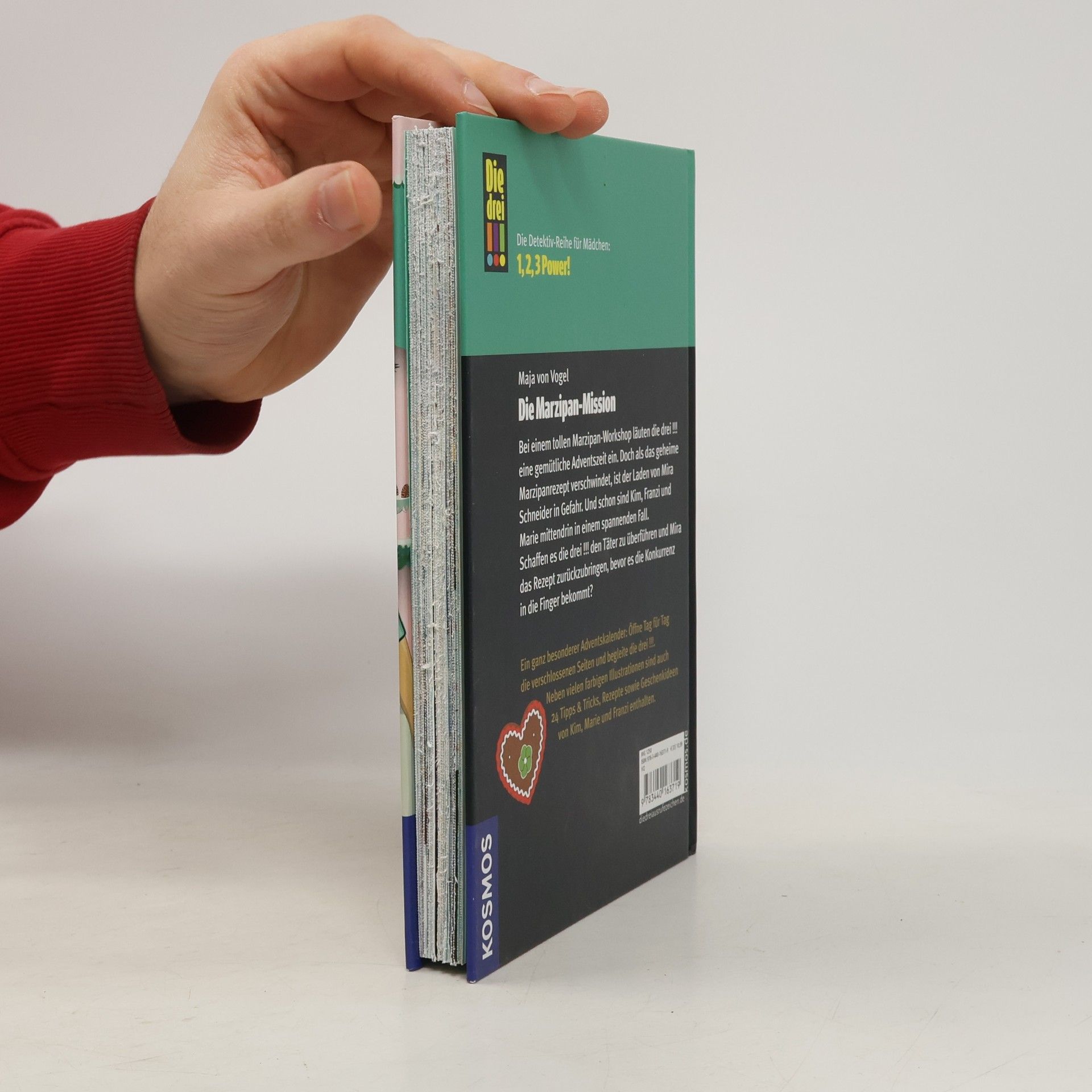 Ein ganz besonderer Adventskalender: Tag für Tag die verschlossenen Seiten öffnen und „Die drei !!!“ durch den Advent begleiten. Neben den 24 verschlossenen Kapiteln sind Rätsel, Basteltipps, Backrezepte und festliche Ideen für Styling und Geschenke von Kim, Marie und Franzi sowie ein „Die drei !!!“-Poster enthalten. Kim, Franzi und Marie sind „Die drei !!!“. Mutig und clever ermitteln die drei Freundinnen und sind jedem Fall gewachsen. Die drei !!! nehmen an einem Pralinen-Workshop der begnadeten Zuckerbäckerin Mira Schneider teil. Doch wenige Tage später folgt der Schock: das geheime Familienrezept für das berühmte Marzipankonfekt wurde gestohlen. Kim, Franzi und Marie sind ratlos. Hat wirklich der Geist von Miras Oma das Rezept entwendet?