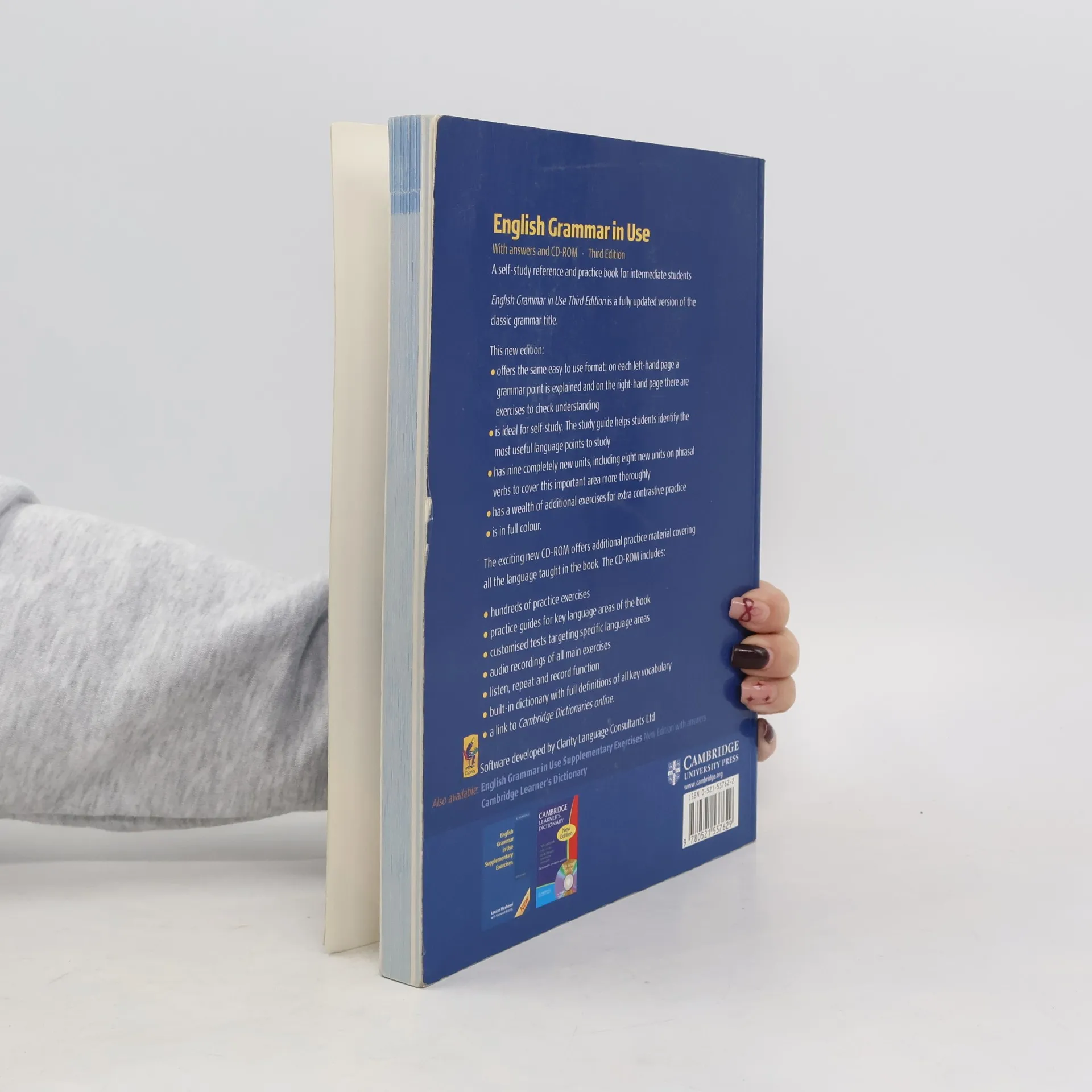 English Grammar in Use Third edition is a fully updated version of the classic grammar title. It retains all the key features of clarity and accessibility that have made this book so popular with students and teachers alike. This edition, with answers and CD-ROM, is ideal for self-study. The CD-ROM includes hundreds of interactive exercises to reinforce the language learned in the book.
