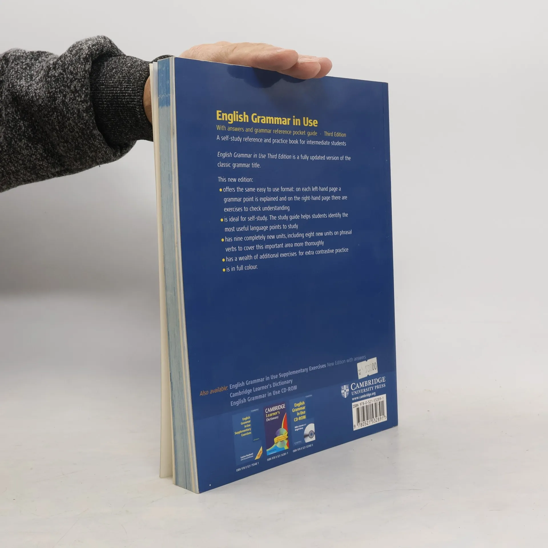 "A fully updated version of the world's best-selling grammar title. English Grammar in Use Third edition is a fully updated version of the classic grammar title. It retains all the key features of clarity and accessibility that have made the book so popular with students and teachers alike. This edition, with answers, is ideal for self-study and comes with a handy pull-out reference panel which allows students to review key grammar points at a glance."--Publisher description