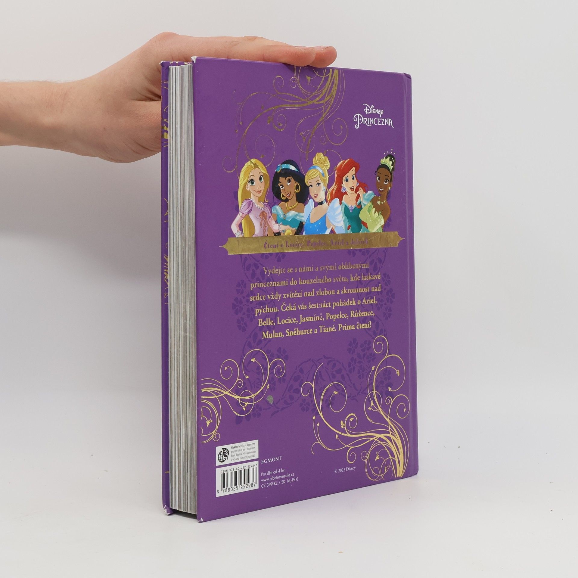 Kniha barevných ilustrací a pohádek o princeznách a pohádkových postavách, které děti znají z animovaných filmů z dílny Walta Disneyho.