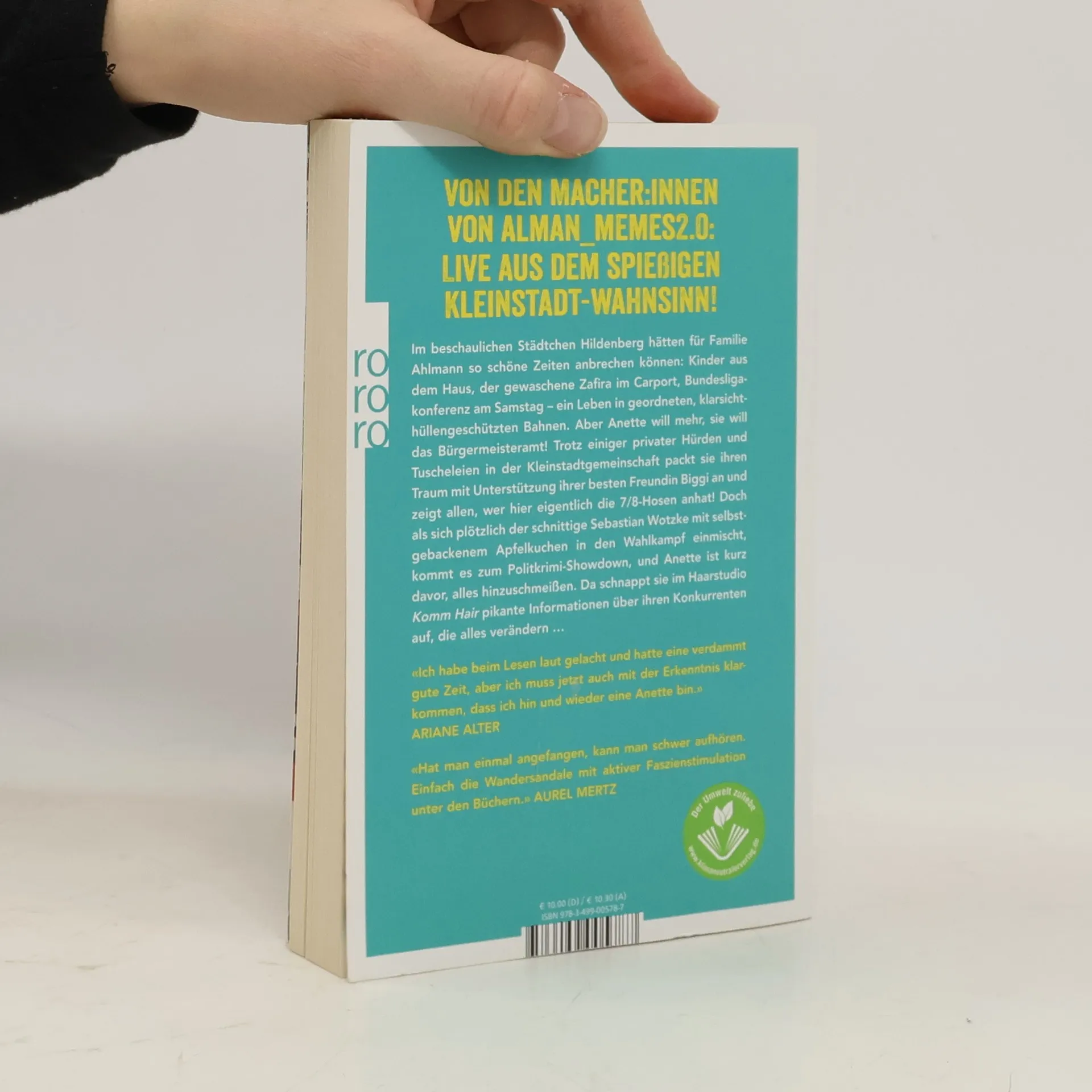 Die Macher:innen vom Instagram-Account alman_memes2.0, deren Geschichten über Anette, Achim und Co. von über 600.000 Menschen gefeiert werden, schildern den Wahnsinn des Kleinstadtlebens. In der Rosengarten-Siedlung im ruhigen Hildenberg könnten die Ahlmanns eigentlich entspannte Zeiten genießen: Die Kinder sind aus dem Haus, der Zafira steht bereit für Ausflüge, und die Bundesligakonferenz am Samstag verspricht einen geregelten Alltag. Doch Anette strebt nach mehr – dem Bürgermeisteramt. Plötzlich wird die beschauliche Ruhe durch Wahlkampfhelfer auf der Couch und die Aufmerksamkeit der ganzen Stadt gestört. Trotz privater Hürden und dem Gerede der Nachbarn stürzt sich Anette mit Elan in den Wahlkampf, unterstützt von ihrer besten Freundin Biggi. Doch als der charmante Sebastian Wotzke mit selbstgebackenem Apfelkuchen ins Rennen eingreift, droht ein Polit-Krimi-Showdown, der Anette an den Rand der Verzweiflung bringt. Im Haarstudio Komm Hair erfährt sie jedoch pikante Informationen über ihren Konkurrenten, die alles verändern könnten. Leser:innen berichten von herzhaftem Lachen und der Erkenntnis, dass sie manchmal selbst wie Anette sind.