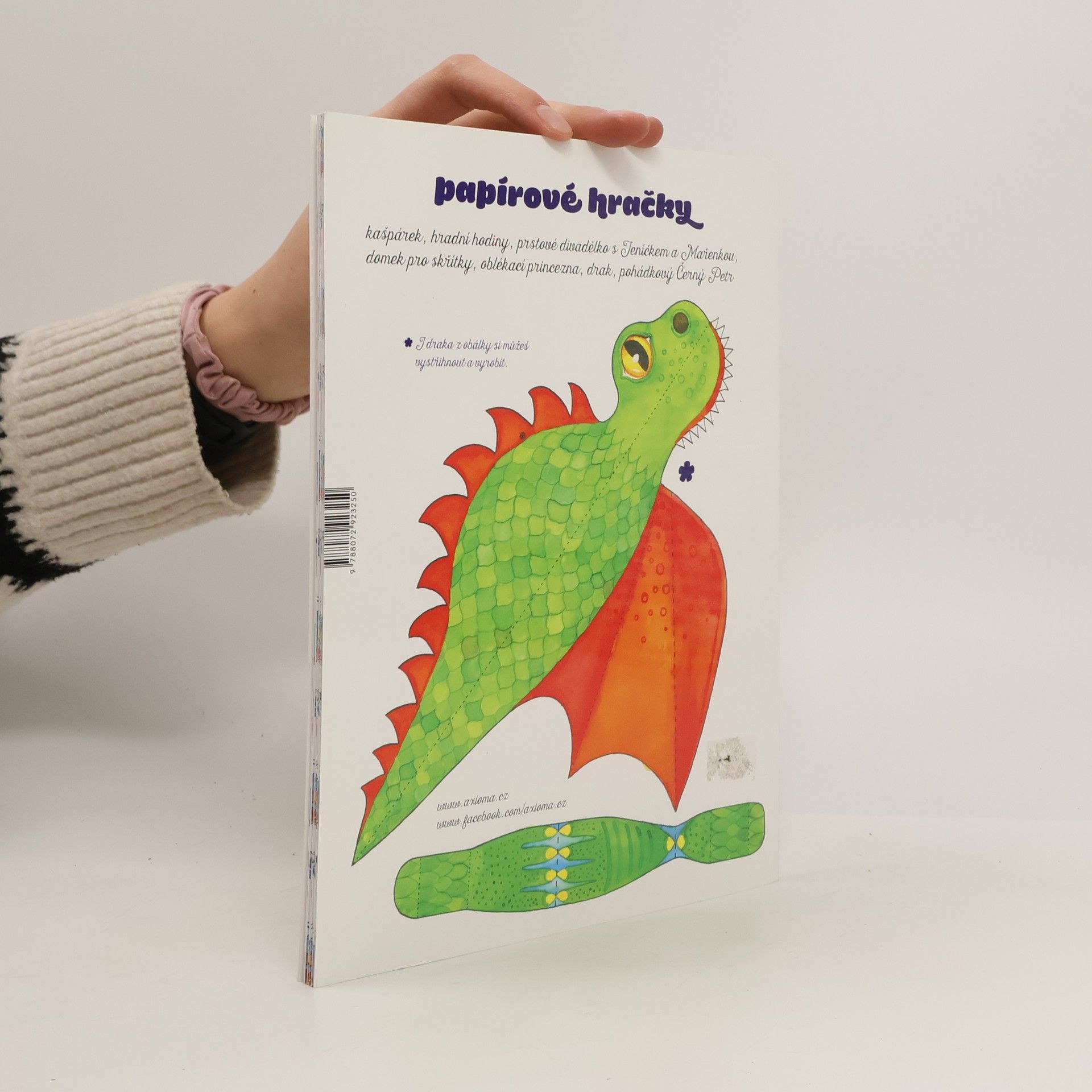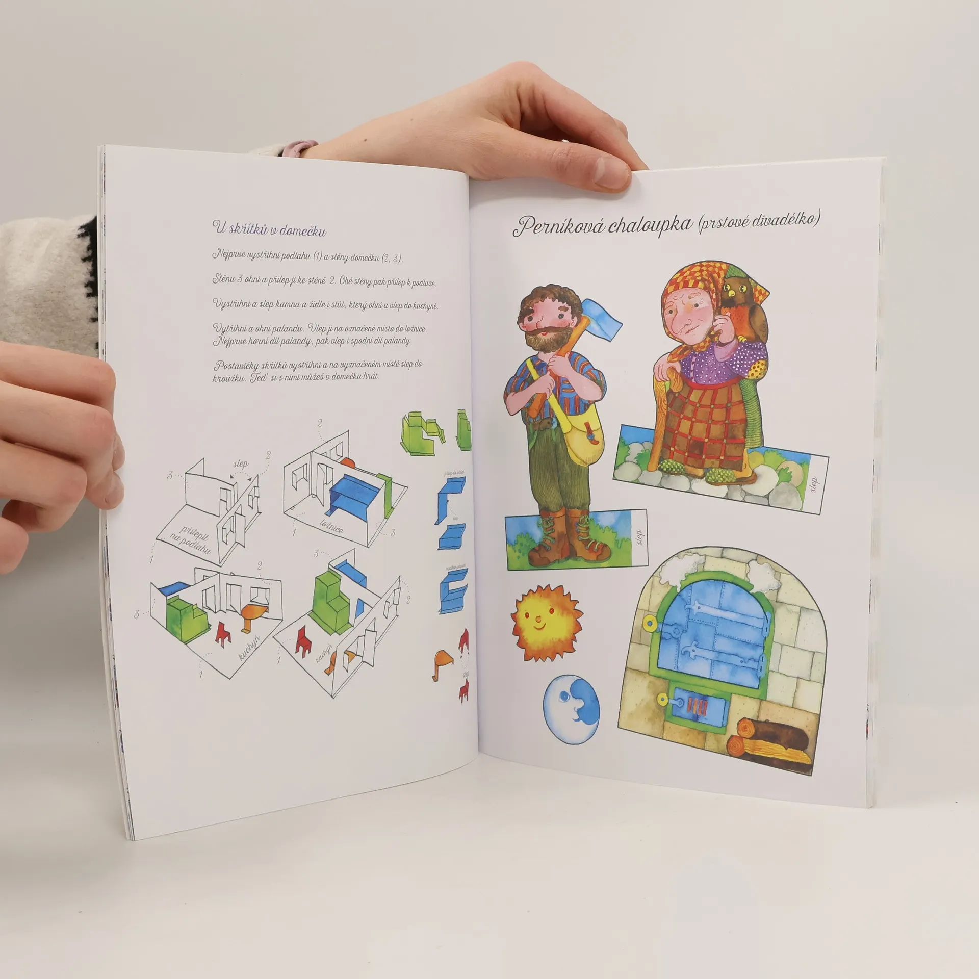 Papírové hračky kašpárek, hradní hodiny, prstové divadélko s Jeníčkem a Mařenkou, domek pro skřítky, oblékací princezna, drak, pohádkový Černý Petr.