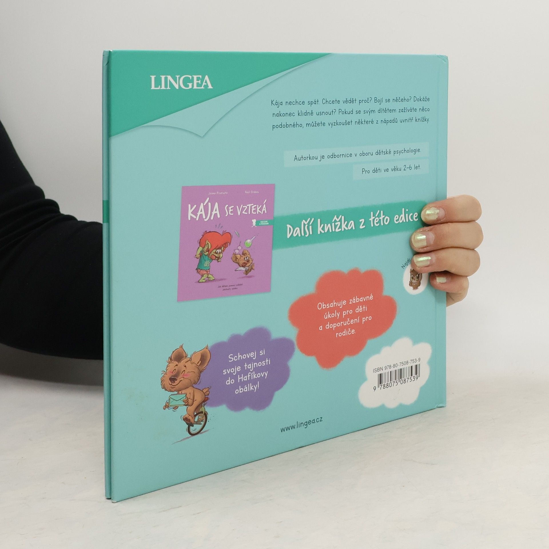 Kája nechce spát. Chcete vědět proč? Bojí se něčeho? Dokáže nakonec klidně usnout? Pokud se svým dítětem ve věku 2–6 let zažíváte něco podobného, můžete vyzkoušet některé z nápadů uvnitř knížky. Autorkou je odbornice v oboru dětské psychologie. Věnováno všem rodičům, kteří láskyplně bdí nad spánkem svých dětí.