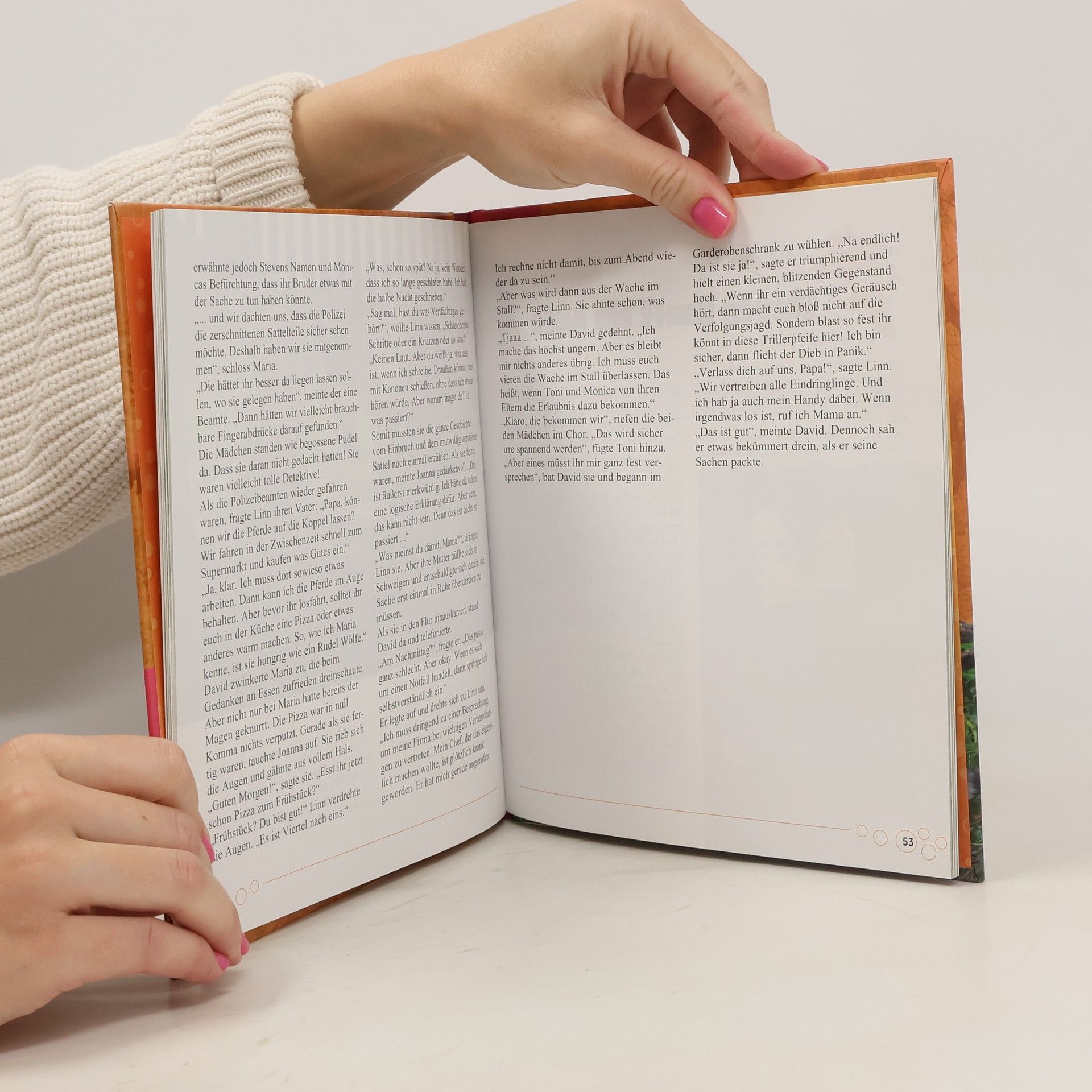 Linns beste Freundin Maria ist mit ihrer Familie in die Niederlande gezogen, aber das hat ihrer Freundschaft nicht geschadet. Im Gegenteil, nun will Maria ihre ganzen Sommerferien auf dem Hof von Linns Eltern verbringen. Und ihr Pony Le Bel ist mit von der Partie! Wundervolle Tage auf dem Rücken ihrer Pferde und im Kreis ihrer Freunde warten auf die beiden. Doch was sie nicht wissen: Maria ist nicht die Einzige, die mit der Fähre aus den Niederlanden gekommen ist … Als im Stall merkwürdige Dinge geschehen, werden die Mädchen aus ihrer Ferientraumwelt schnell in die Wirklichkeit zurückgeholt …
