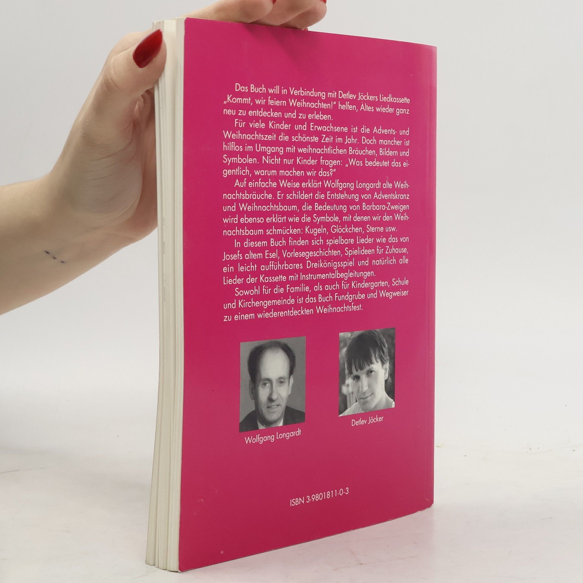 Kommt, wir feiern Weihnachten Liedheft für Kinder ab 4 Jahren Neue Spiellieder zu Weihnachtsbräuchen und Symbolen. Fundgrube und Wegweiser zu einem wiederentdeckten Weihnachtsfest. Lieder: Macht die Türen auf Wenn das Jahr sich rundet Das Lied von den Glocken Das Lied von der Wunderkerze Das Lied von den kleinen Überraschungen Gott will viel mehr Liebe Ein Kerzenlicht am Tannenzweig Weihnachtsbaum, Hoffnungsbaum Was kann in diesen Tagen „Hosianna“, du neugebor´nes Kind Lied von Josefs Esel Das Lied vom leisen Weihnachten Dieser Titel ist auch als MC (ISBN 3-927497-22-3) erschienen.