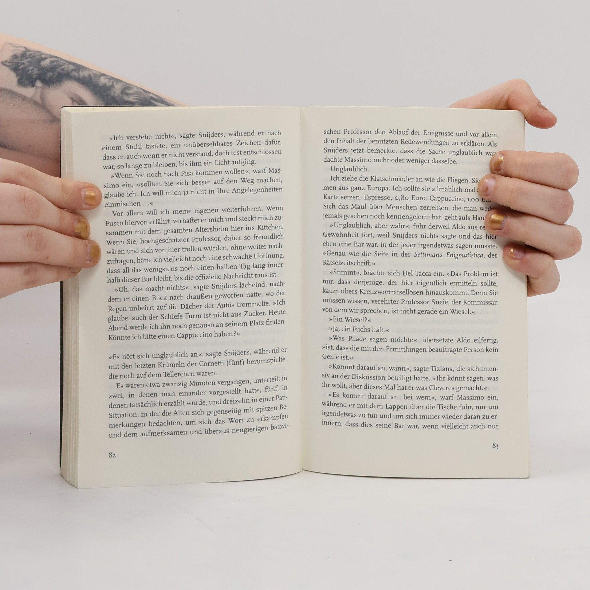 Die vier Alten aus Massimos Bar sind wieder da! Immer noch haben sie nichts Besseres zu tun, als Karten zu spielen, Averna auf Eis trinken und dem armen Massimo mit ihren Kommentaren auf die Nerven zu fallen. Dabei hat der junge Barista neben der Verköstigung seines Seniorenclubs noch eine weit schwierigere Aufgabe zu lösen: Wer hat den Professor auf dem Gewissen, der bei einem Kongress in Pineta auf mysteriöse Weise ums Leben kam?