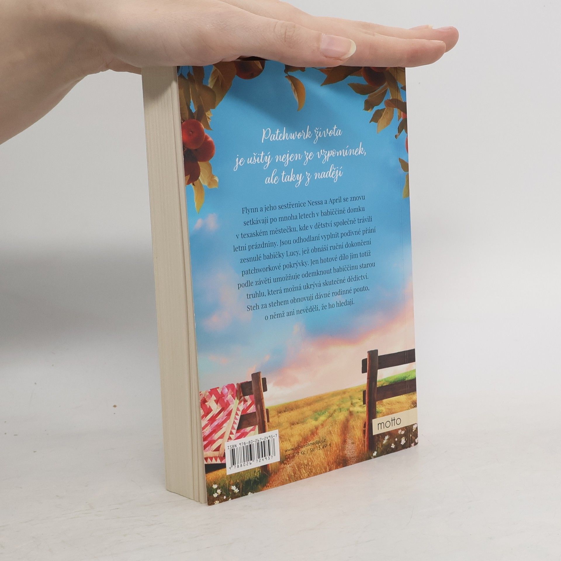 Patchwork života je ušitý nejen ze vzpomínek, ale taky z nadějí Flynn a jeho sestřenice Nessa a April se znovu setkávají po mnoha letech v babiččině domku v texaském městečku, kde v dětství společně trávili letní prázdniny. Jsou odhodlaní vyplnit podivné přání zesnulé babičky Lucy, jež obnáší ruční dokončení patchworkové pokrývky. Jen hotové dílo jim totiž podle závěti umožňuje odemknout babiččinu starou truhlu, která možná ukrývá skutečné dědictví. Steh za stehem obnovují dávné rodinné pouto, o němž ani nevěděli, že ho hledají.