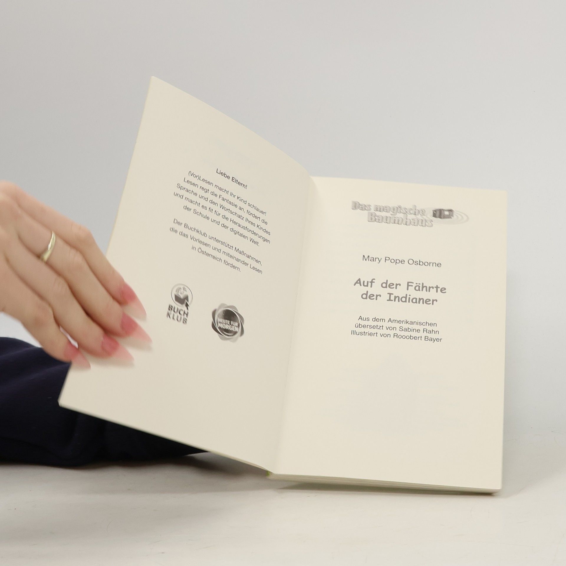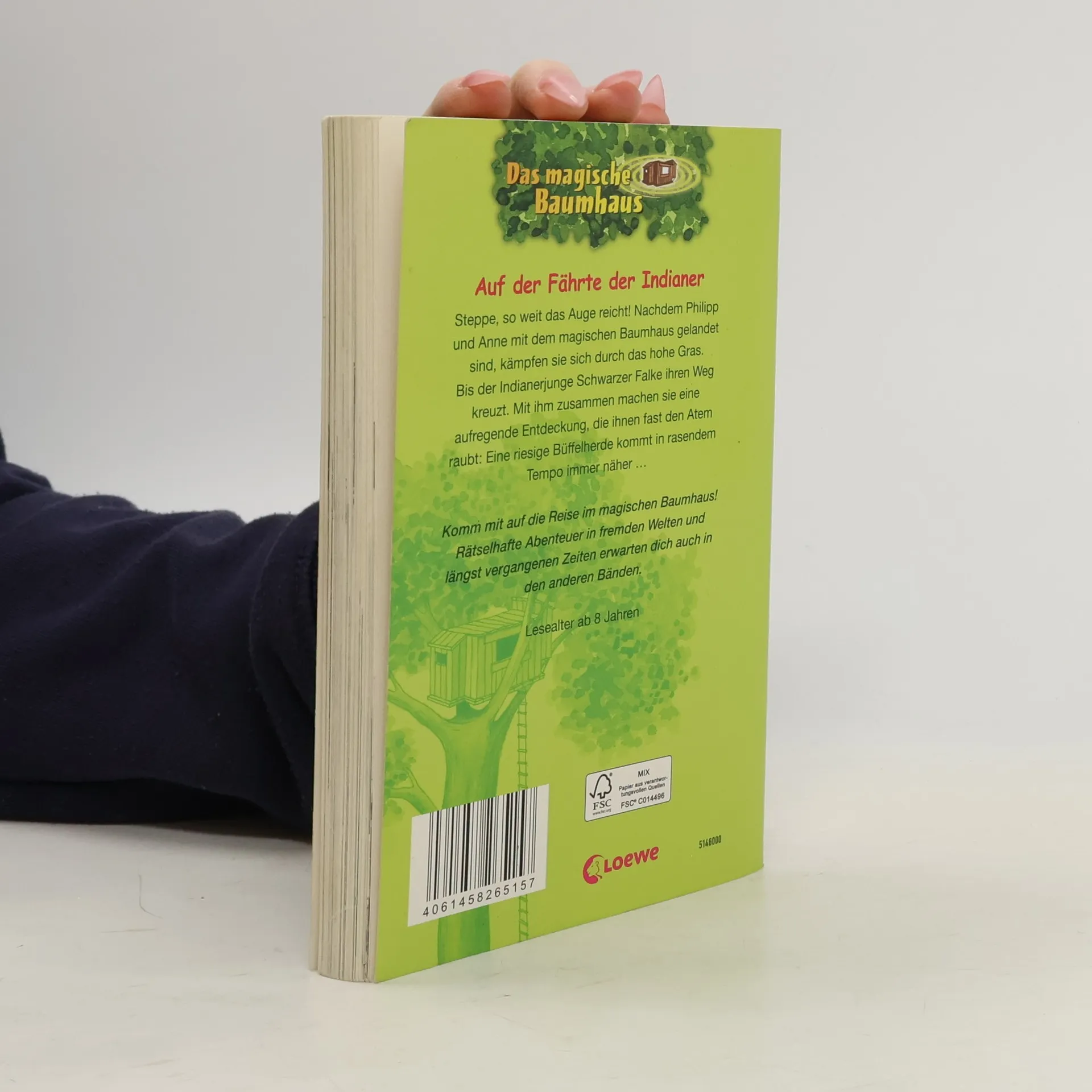 Steppe, so weit das Auge reicht! Nachdem Philipp und Anne mit dem magischen Baumhaus gelandet sind, kämpfen sie sich durch das hohe Gras. Bis der Indianerjunge Schwarzer Falke ihren Weg kreuzt. Mit ihm zusammen machen sie eine aufregende Entdeckung, die ihnen fast den Atem raubt: eine riesige Büffelherde kommt in rasendem Tempo immer näher auf sie zu ... Komm mit auf die Reise im magischen Baumhaus! Rätselhafte Abenteuer in fremden Welten und längst vergangenen Zeiten erwarten dich auch in den nächsten Bänden. Die beliebte Kinderbuch-Reihe von Bestsellerautorin Mary Pope Osborne! Die Geschwister Anne und Philipp reisen mit dem magischen Baumhaus durch die Zeit. Sie erleben spannende Abenteuer, entdecken ferne Länder und lernen viele berühmte Persönlichkeiten kennen.