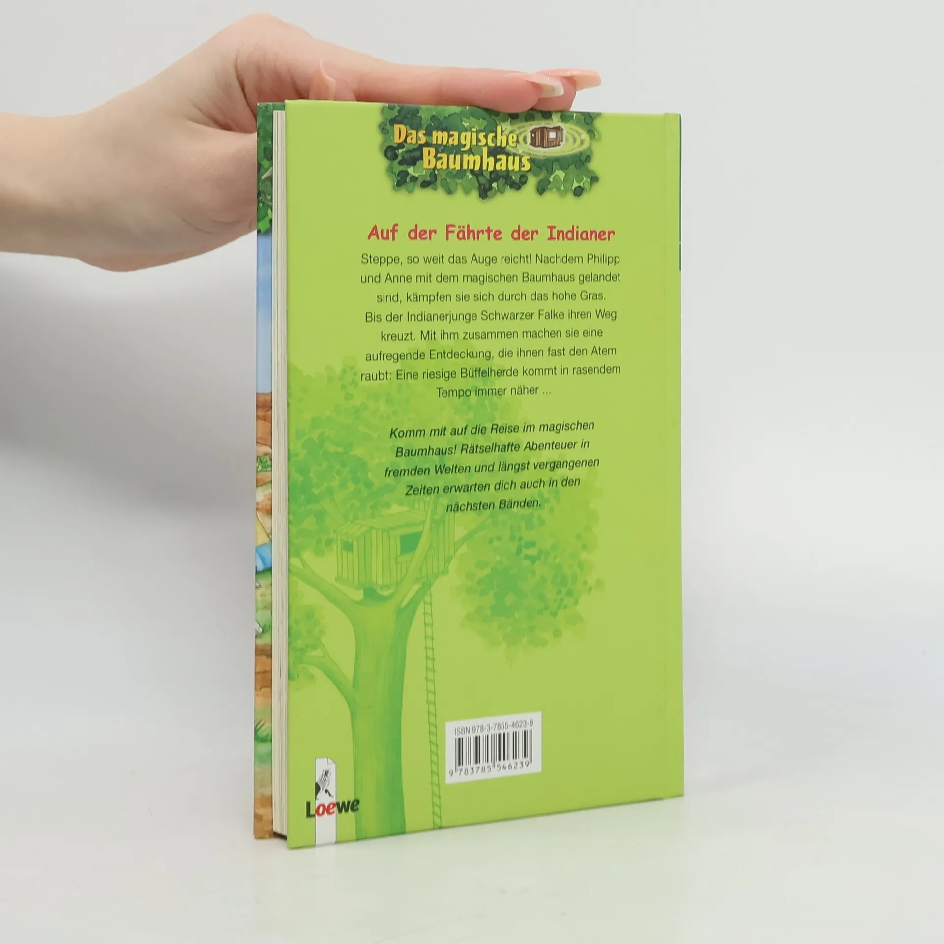 Steppe, so weit das Auge reicht! Nachdem Philipp und Anne mit dem magischen Baumhaus gelandet sind, kämpfen sie sich durch das hohe Gras. Bis der Indianerjunge Schwarzer Falke ihren Weg kreuzt. Mit ihm zusammen machen sie eine aufregende Entdeckung, die ihnen fast den Atem raubt: eine riesige Büffelherde kommt in rasendem Tempo immer näher auf sie zu ... Komm mit auf die Reise im magischen Baumhaus! Rätselhafte Abenteuer in fremden Welten und längst vergangenen Zeiten erwarten dich auch in den nächsten Bänden. Die beliebte Kinderbuch-Reihe von Bestsellerautorin Mary Pope Osborne! Die Geschwister Anne und Philipp reisen mit dem magischen Baumhaus durch die Zeit. Sie erleben spannende Abenteuer, entdecken ferne Länder und lernen viele berühmte Persönlichkeiten kennen.