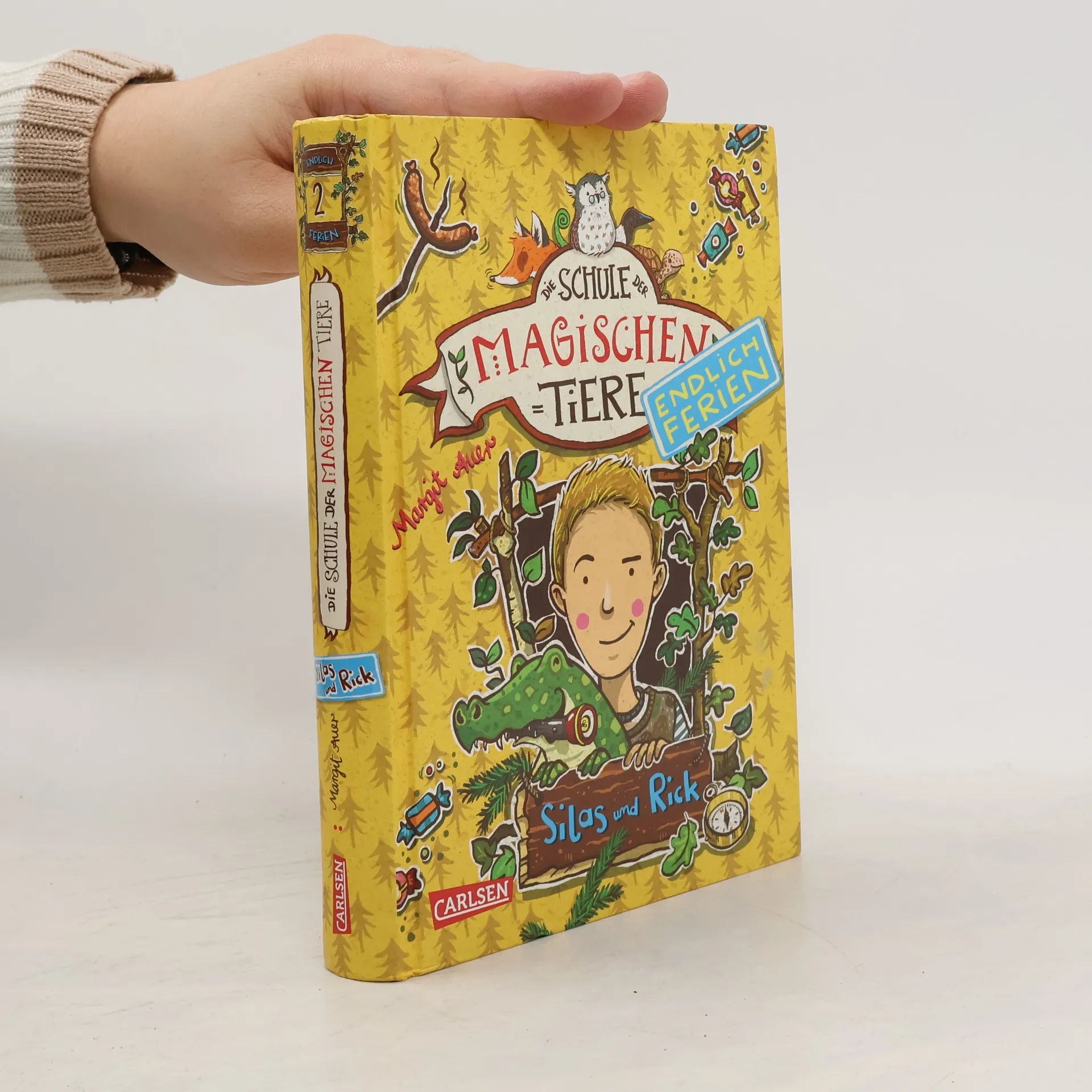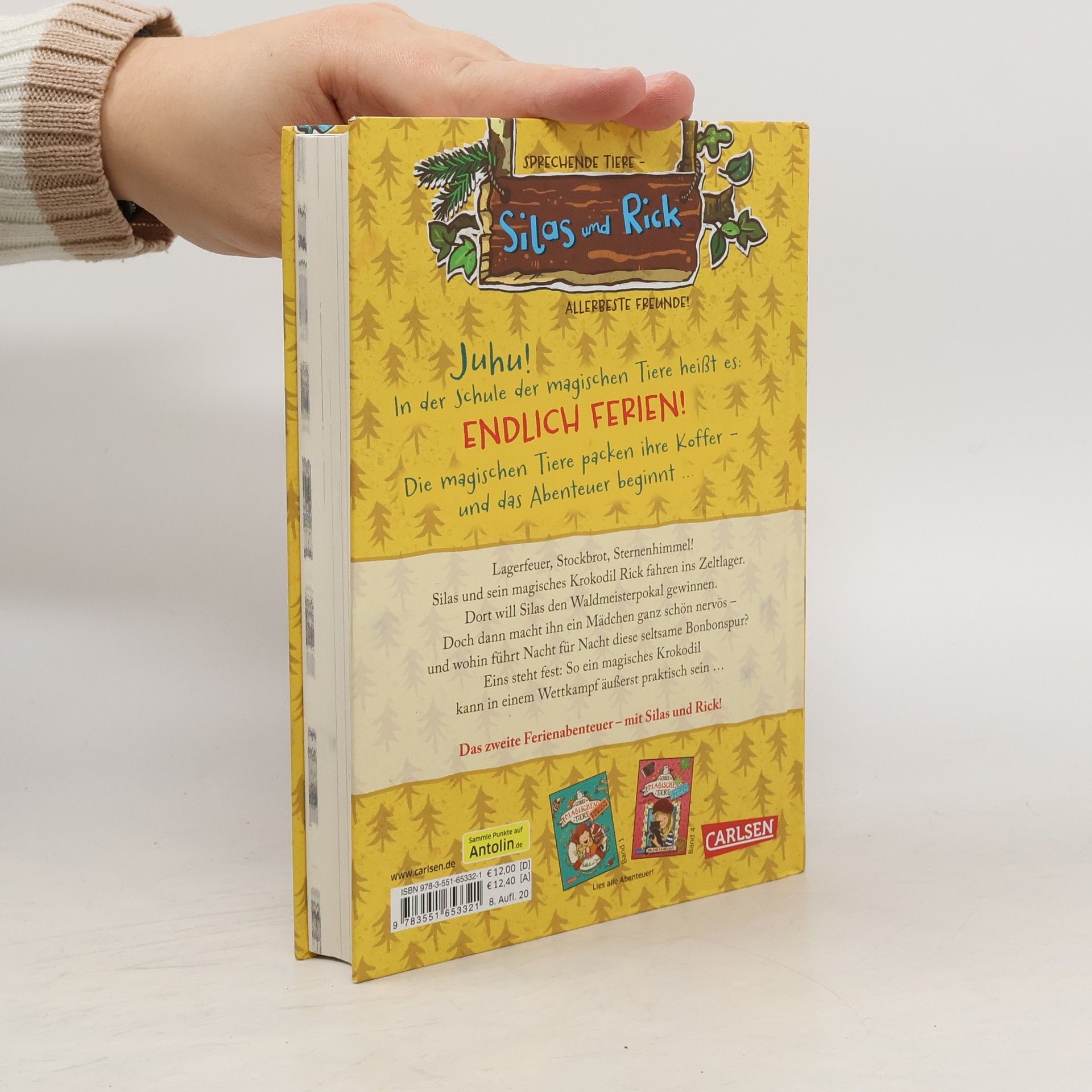 Jetzt kostenlos herunterladen – die App zur Serie! *** Auf in die Ferien - mit einem magischen, sprechenden Tier! BAND 2: Lagerfeuer, Stockbrot, Sternenhimmel! Silas und sein magisches Krokodil Rick fahren ins Zeltlager. Dort will Silas den Waldmeisterpokal gewinnen. Doch dann macht ihn ein Mädchen ganz schön nervös – und wohin führt Nacht für Nacht diese seltsame Bonbonspur? Eins steht fest: So ein magisches Krokodil kann in einem Wettkampf äußerst praktisch sein … DIE SCHULE DER MAGISCHEN TIERE - Endlich Ferien: In der Schule der magischen Tiere heißt es: Endlich Ferien! Die magischen Tiere packen ihre Koffer – und das Abenteuer beginnt … Ein neuer spannender Ferienkrimi in kurzen Kapiteln - mit echtem magischem Tier. Viel Spaß mit dem zweiten Ferienabenteuer der Bestseller-Reihe!
