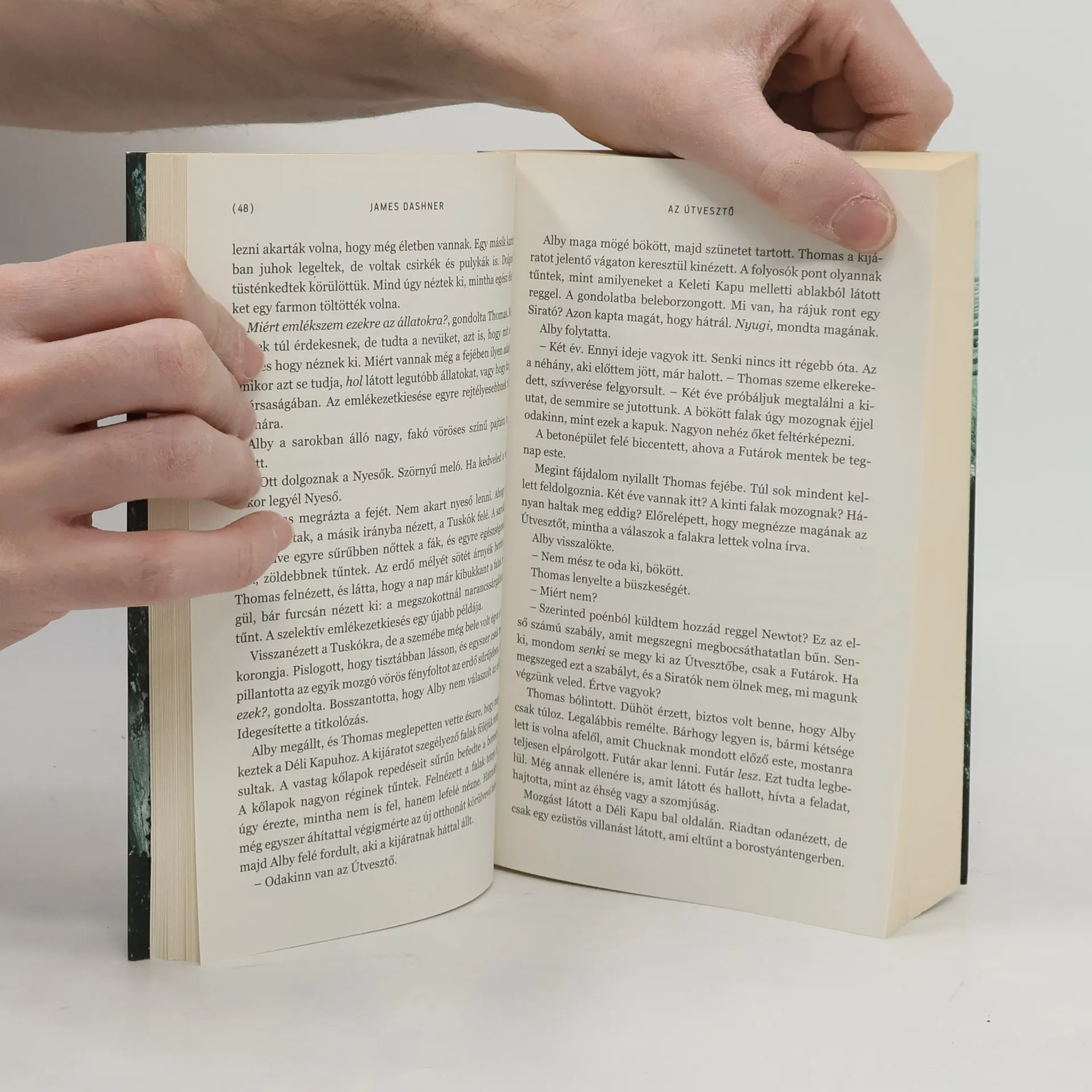 Thomas egy hideg, sötét liftben tér magához, és az egyetlen, amire emlékszik, az a keresztneve. Minden más eltűnt az emlékezetéből. Amikor a lift ajtaja kinyílik, Thomas a Tisztáson találja magát egy csapat srác között. A Tisztáson élő fiúk mindennap Futárokat küldenek a lakóhelyüket körbeölelő Útvesztőbe, melyet nehéz kiismerni, mivel a falai minden éjjelente elmozdulnak. Thomas, az utolsóként érkező újonc számára egyre inkább nyilvánvalóvá válik, hogy az Útvesztő valójában egy megfejtésre váró kód. Úgy dönt tehát, hogy ő is Futár lesz. Annak viszont, hogy a megfejtés közelébe kerüljön, nagy ára van: például olyan lényekkel is találkoznia kell, melyek elől mindenki más menekül. Aztán egyszer csak minden megváltozik, amikor megérkezik a Tisztásra az egyetlen lány, Teresa, aki nemcsak Thomasra lesz nagy hatással, hanem az egész csapat sorsára is... James Dashner, a világszerte szenzációs sikerű Útvesztő-sorozat szerzője az egyik legnépszerűbb amerikai ifjúsági író. A trilógiának szánt sorozat köteteinek száma utóbb négyre nőtt, ahogy a Sziklás-hegységben élő szerző gyermekeinek száma is. Az Útvesztő és folytatása, a Tűzpróba írója amúgy nem nagy barátja a számoknak, pedig eredetileg könyvelőként dolgozott. Most viszont rendkívül hálás azért, hogy történetek írásából élhet, és úgy tartja, nála nagyobb mázlista kevés van a világon.