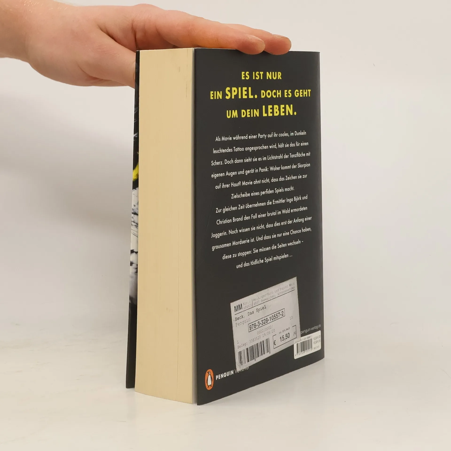 Sie jagen dich. Sie töten dich. Als Mavie während einer Party auf ihr cooles, im Dunkeln leuchtendes Tattoo angesprochen wird, hält sie das für einen Scherz. Doch dann sieht sie es im Lichtstrahl der Tanzfläche mit eigenen Augen und gerät in Panik: Woher kommt der Skorpion auf ihrer Haut? Mavie ahnt nicht, dass das Zeichen sie zur Zielscheibe eines perfiden Spiels macht. Zur gleichen Zeit übernehmen die Ermittler Inga Björk und Christian Brand den Fall einer brutal im Wald ermordeten Joggerin. Noch wissen sie nicht, dass dies erst der Anfang einer grausamen Mordserie ist. Und dass sie nur eine Chance haben, diese zu stoppen: Sie müssen die Seiten wechseln – und das tödliche Spiel mitspielen …