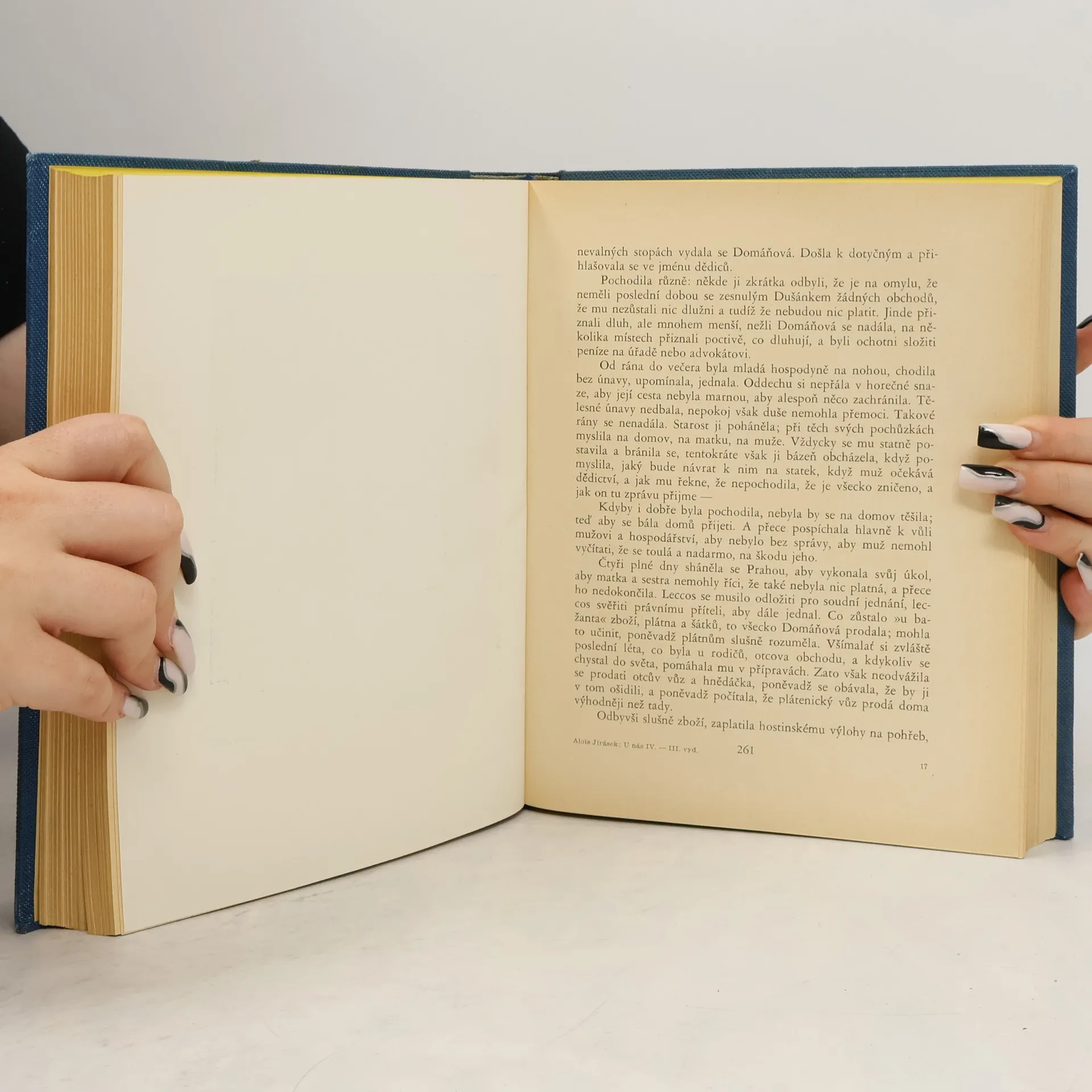 Alois Jirásek: U NÁS. Románová čtyřdílná kronika. Kniha čtvrtá - ZEMĚŽLUČ. Psáno roku 1901 - 1902. Druhé vydání v roce 1927. Nakladatelství J. Otto, spol. s r.o. v Praze, edice: Nová kronika. Tiskem České grafické unie, a.s. v Praze. Vazba celoplátěná nakladatelská s barevným popisem na hřbetu, stužková záložka.