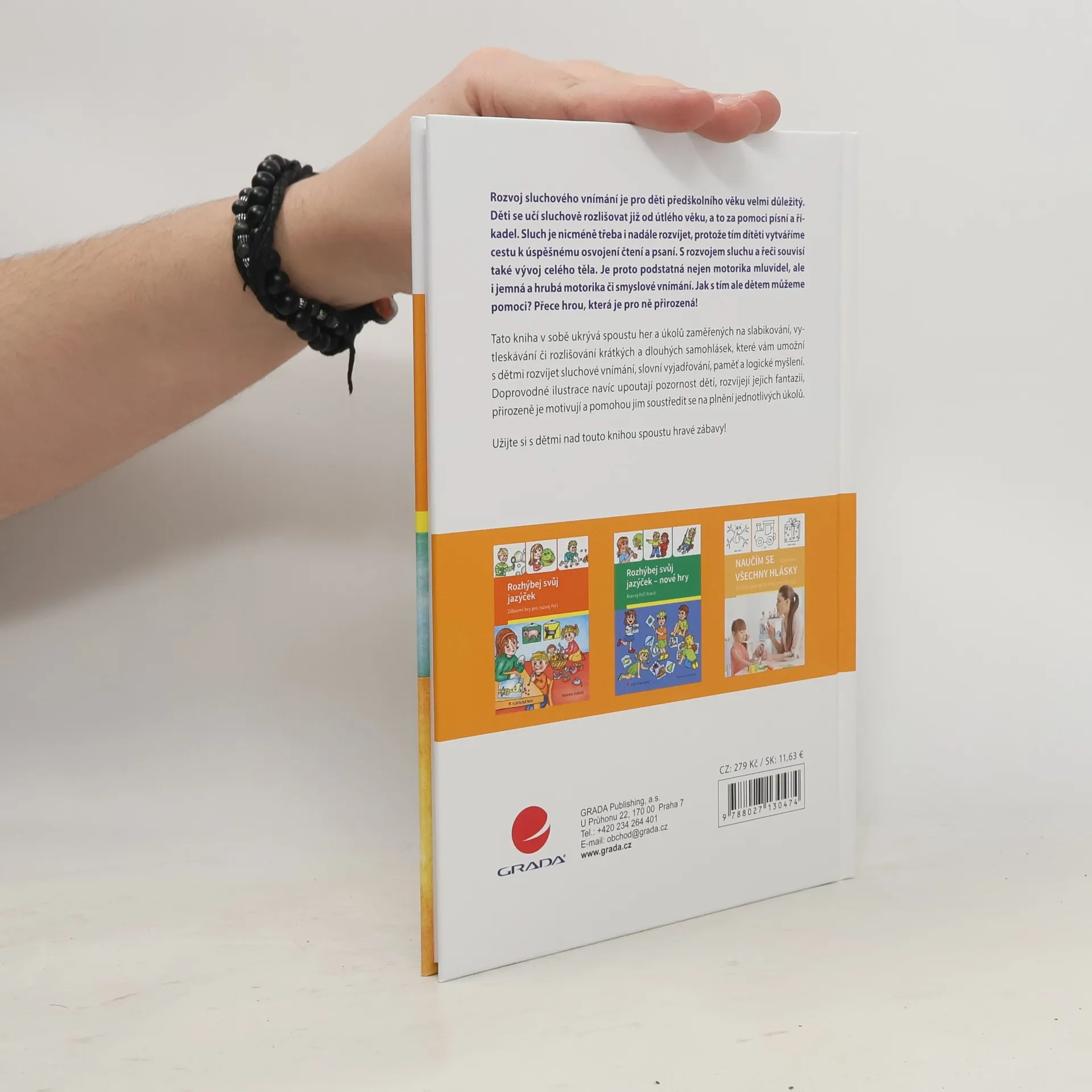 Tato kniha v sobě ukrývá spoustu her a úkolů zaměřených na slabikování, vytleskávání či rozlišování krátkých a dlouhých samohlásek, které vám umožní s dětmi rozvíjet sluchové vnímání, slovní vyjadřování, paměť a logické myšlení. Doprovodné ilustrace navíc upoutají pozornost dětí, rozvíjejí jejich fantazii, přirozeně je motivují a pomohou jim soustředit se na plnění jednotlivých úkolů.