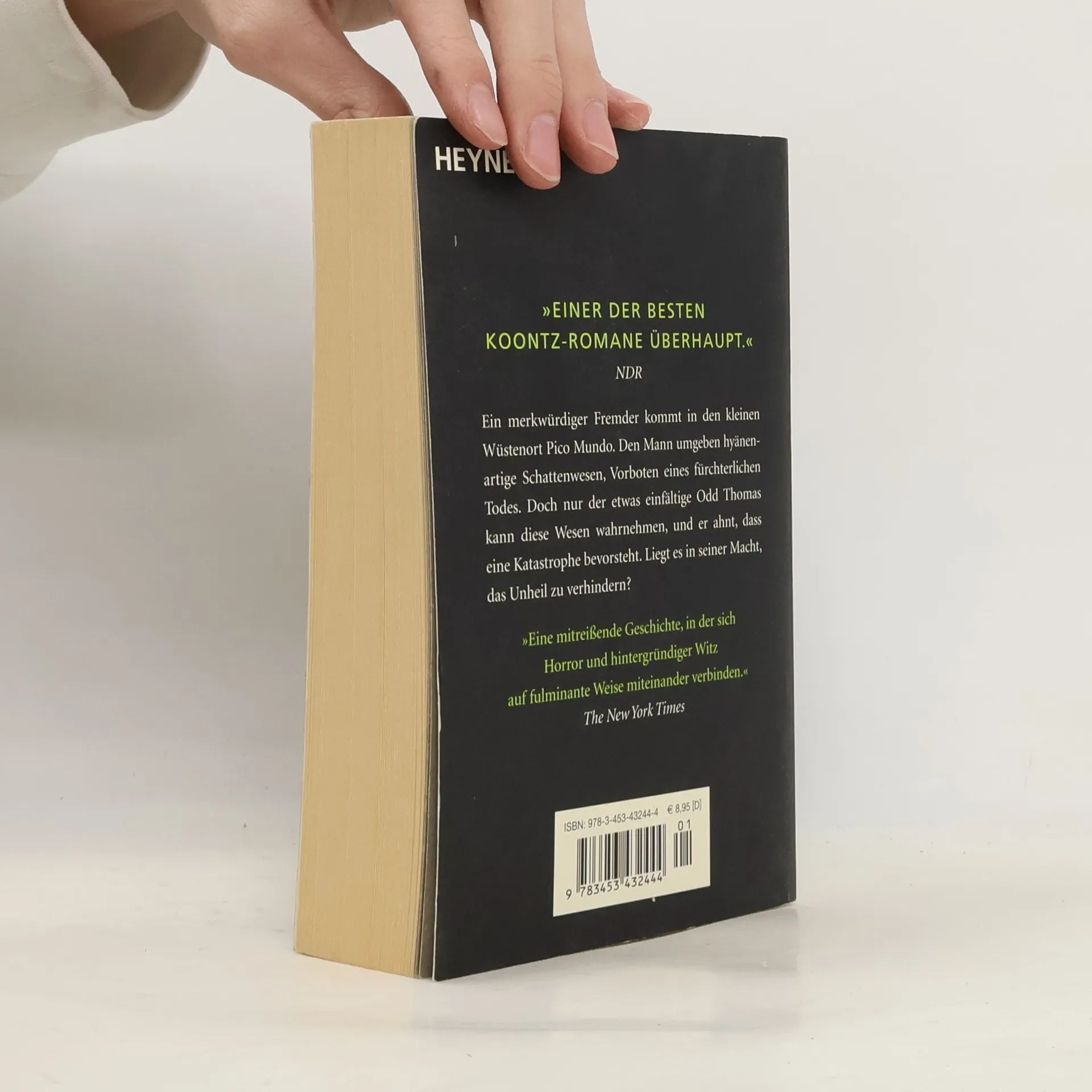 Nie war das Grauen bedrohlicher ... Ein merkwürdiger Fremder kommt in den kleinen Wüstenort Pico Mundo. Ihn umgeben hyänenartige Schatten, Vorboten eines fürchterlichen Todes. Doch nur der etwas einfältige Odd Thomas erkennt sie. Kann er das drohende Massaker verhindern? Odd Thomas lebt bescheiden und zufrieden als Koch in einem kleinen amerikanischen Provinznest. Hochgeistiges ist ihm fremd, doch er hat eine besondere Gabe: Er sieht die Toten und kann mit ihnen kommunizieren. Und er sieht Bodachs, lebende Schatten, die sich von Leid und Verderben nähren. Als ein merkwürdiger Fremder, umflirrt von diesen Schatten, das Restaurant betritt, in dem Odd arbeitet, weiß er, dass Fürchterliches droht. Trotz der Warnungen seiner impulsiven Freundin Stormy wagt er es, dem Mann nachzuspüren und in sein Haus einzudringen. Was er in einem Geheimzimmer findet, lässt ihm das Blut in den Adern gefrieren: einen Schrein, der all den Massenmördern dieser Welt gewidmet ist ...