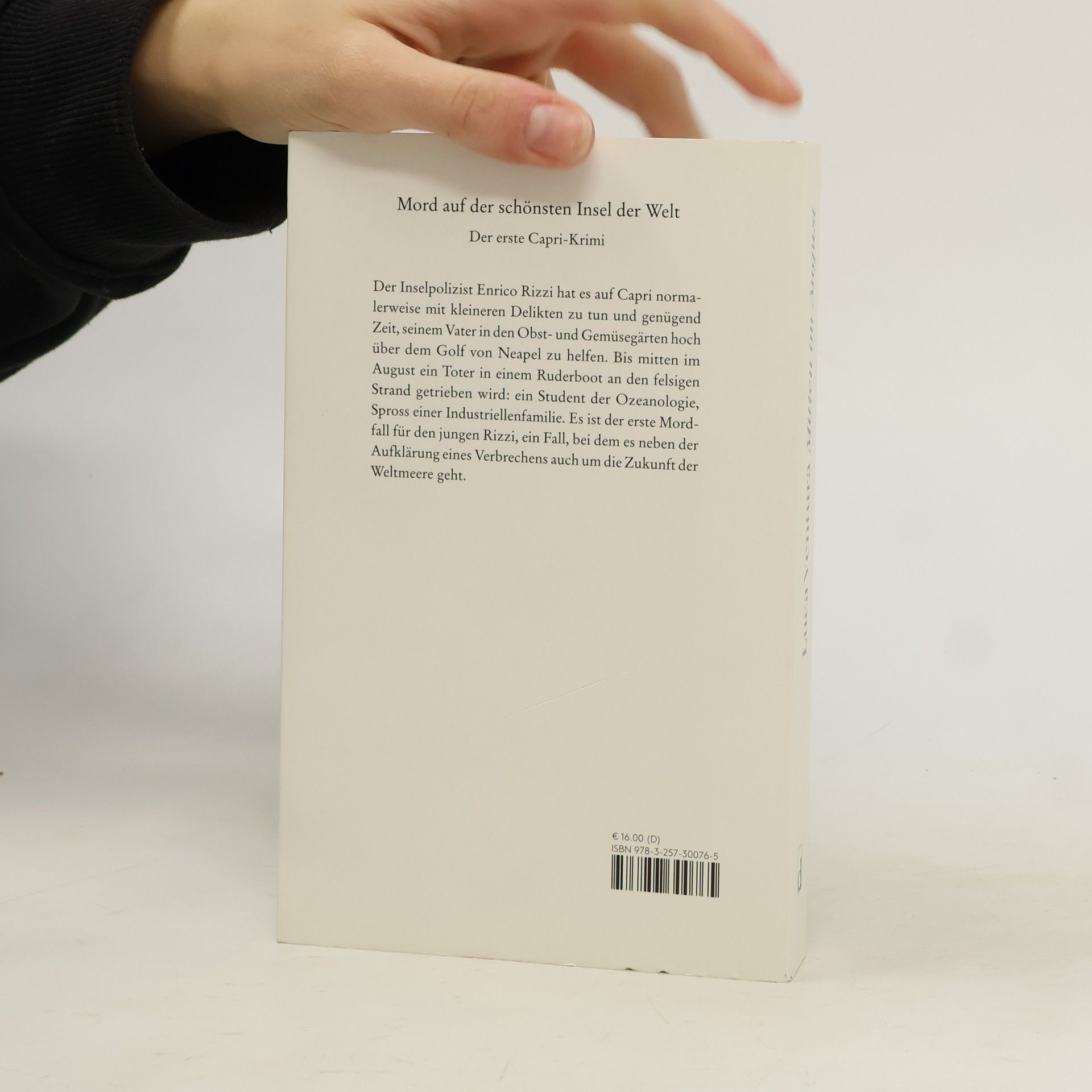 Der Inselpolizist Enrico Rizzi hat es auf Capri zumeist mit kleineren Delikten zu tun und daher genügend Zeit, seinem Vater in den Obst- und Gemüsegärten hoch über dem Golf von Neapel zu helfen. Bis mitten im August ein Toter in einem Ruderboot an den felsigen Strand getrieben wird: Jack Milani, Spross einer Industriellenfamilie und Student der Ozeanologie. Es ist der erste Mordfall für den jungen Rizzi, ein Fall, bei dem es neben der Aufklärung eines Verbrechens auch um die Zukunft der Weltmeere geht.