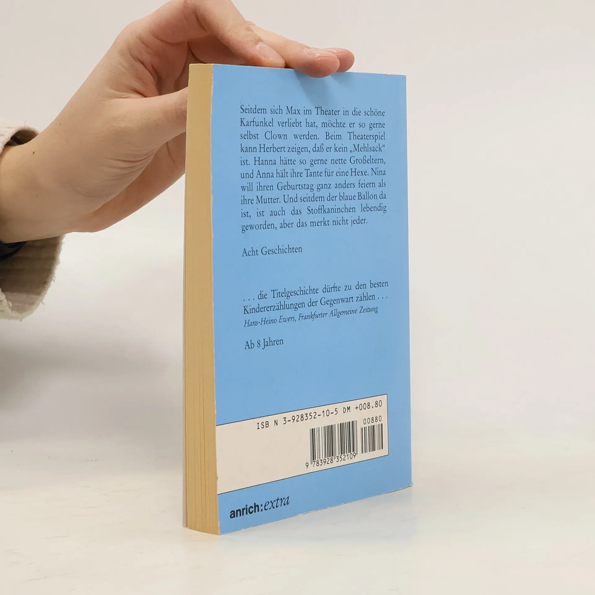 Seitdem sich Max im Theater in die schöne Karfunkel verliebt hat, möchte er so gerne selbst Clown werden. Beim Theaterspiel kann Herbert zeigen, dass er kein Mehlsack ist. Anna hält ihre Tante für eine Hexe, und Nina will ihren Geburtstag ganz anders feiern als ihre Mutter. Und seitdem der blaue Ballon da ist, ist auch das Stoffkaninchen lebendig geworden, aber das merkt nicht jeder.§Acht in sich geschlossene Geschichten, die Einblick geben in die Gefühls- und Erlebniswelt von Acht- bis Zehnjährigen.§