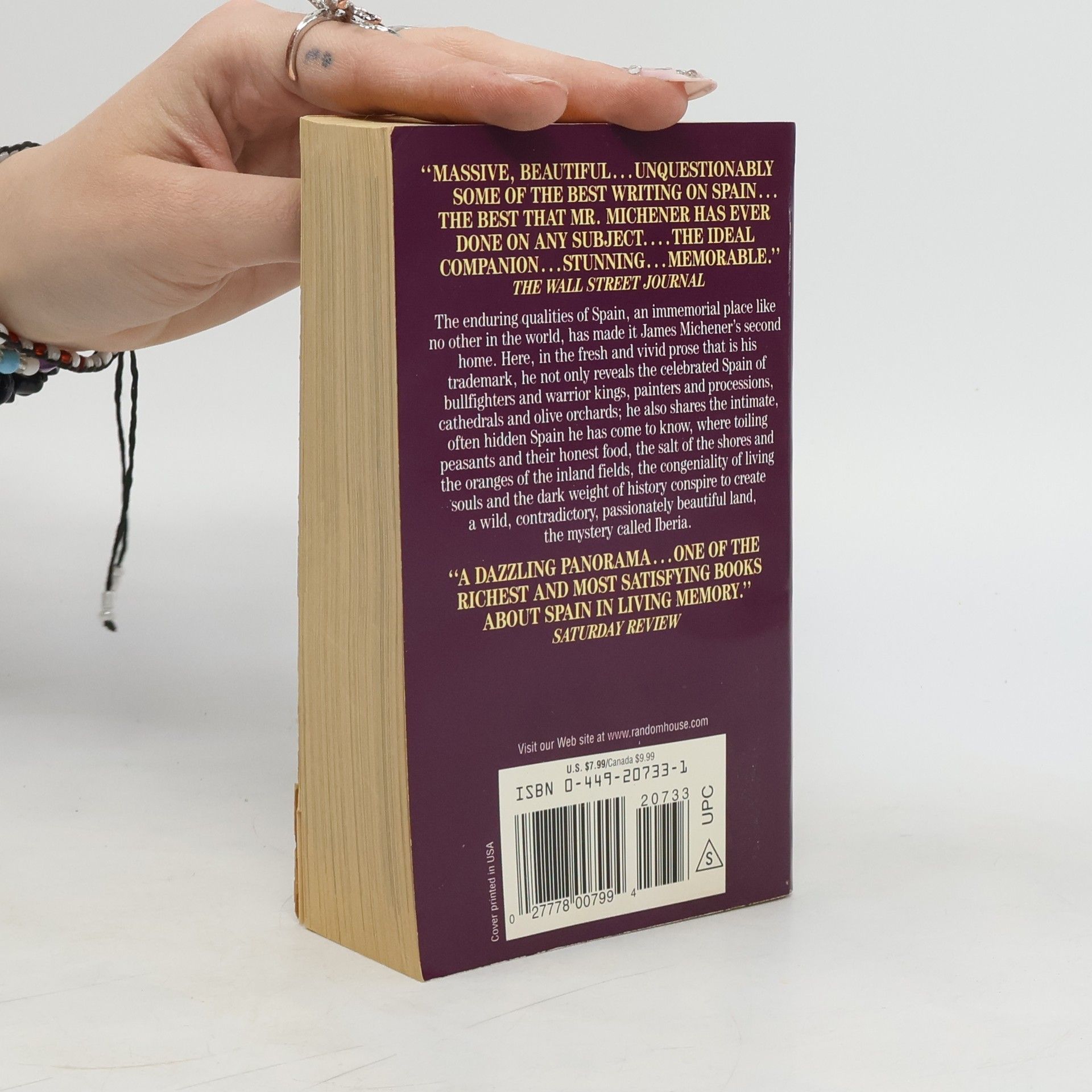 Here, in the fresh, vivid prose that is James Michener's trademark, is the real Spain as he experiences it. He not only reveals the celebrated Spain of bullfights and warror kings, painters and processions, cathedrals and olive orchards; he also shares the intimate, often hidden Spain he has come to know, where toiling peasants and their honest food, the salt of the shores and the oranges of the inland fields, the congeniality of living souls and the dark weight of history conspire to create a wild, contradictory, passionately beautiful land, the mystery called Iberia."Massive, beautiful...Unquestionably some of the best writing on Spain...The best that Mr. Michener has ever done on any subject...Stunning...Memorable."THE WALL STREET JOURNAL
